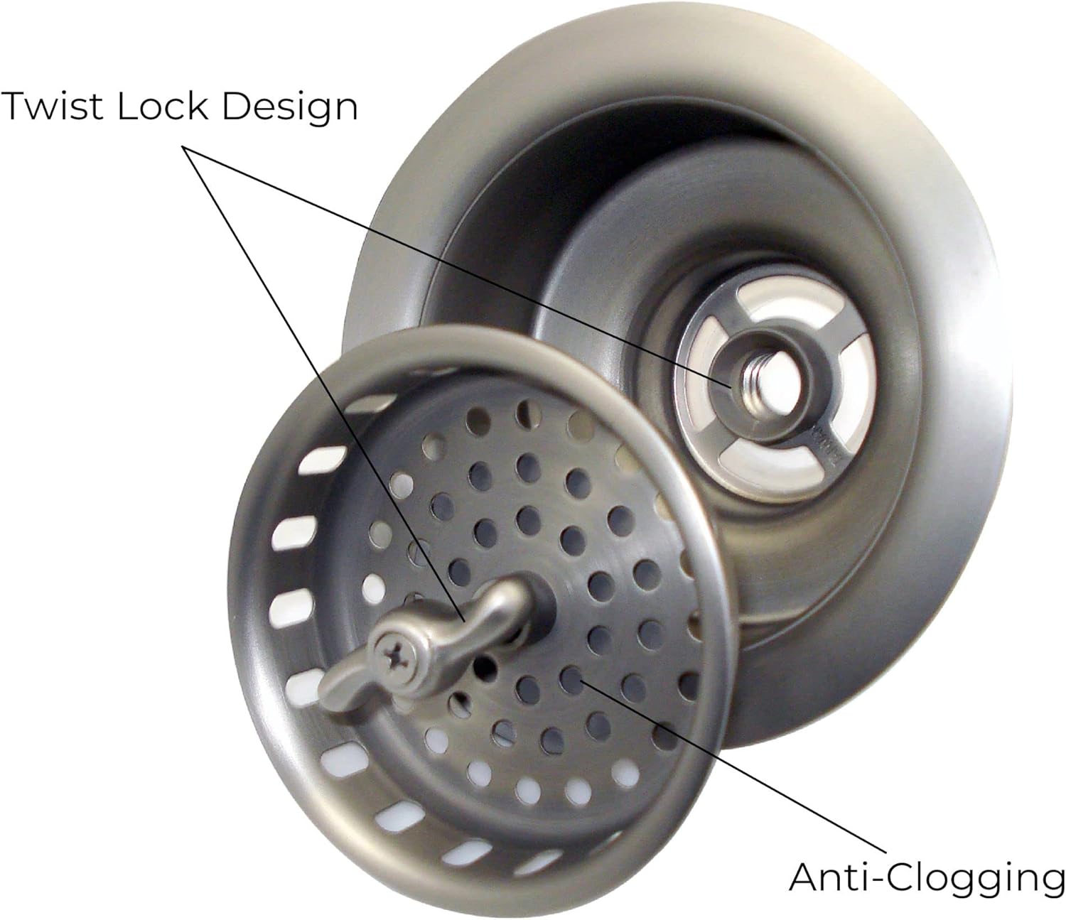 - Twist-to-lock wing nut style design captures food waste and prevents unwanted debris from entering your drain