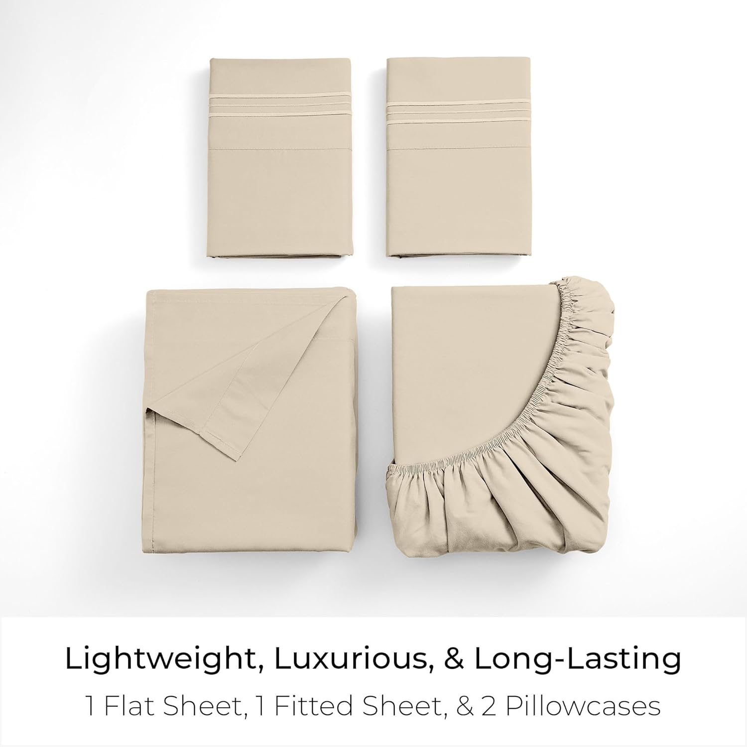 Mellanni Full Sheets Set - 4 PC Iconic Collection Bedding - Hotel Luxury, Extra Soft, Cooling Bed Sheets - Wrinkle, Fade, Stain Resistant (Full, Beige)