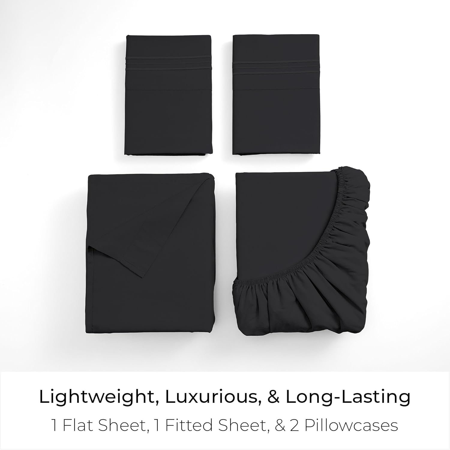 Mellanni King Sheets Set - 4 PC Iconic Collection Bedding - Hotel Luxury, Extra Soft, Cooling Bed Sheets - Wrinkle, Fade, Stain Resistant (King, Black)
