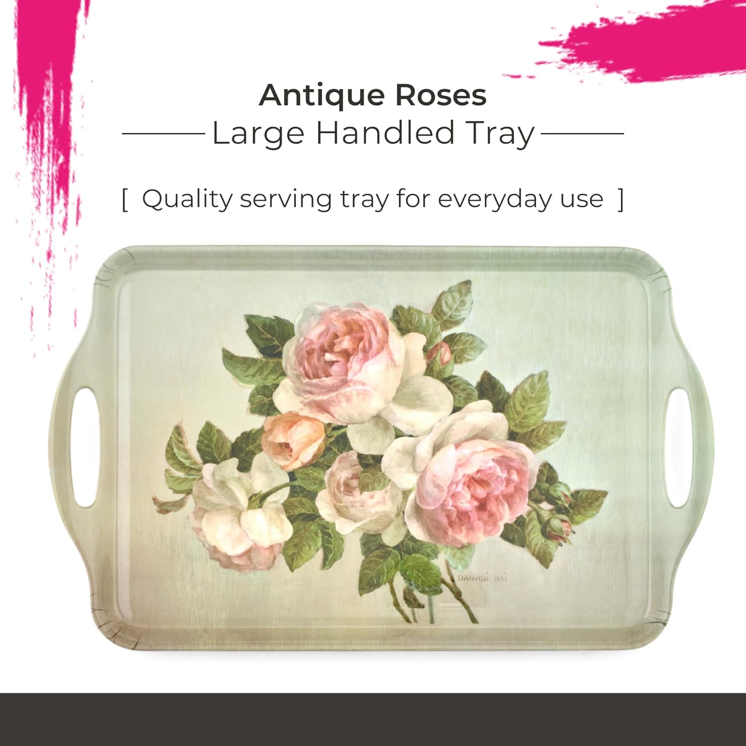 Pimpernel Antique Roses Large Handled Tray - Durable Melamine Serveware with Handles - Dishwasher-Safe Floral Decorative Centerpiece - 18.9" x 11.6" Elegant Tray for Entertaining Guests