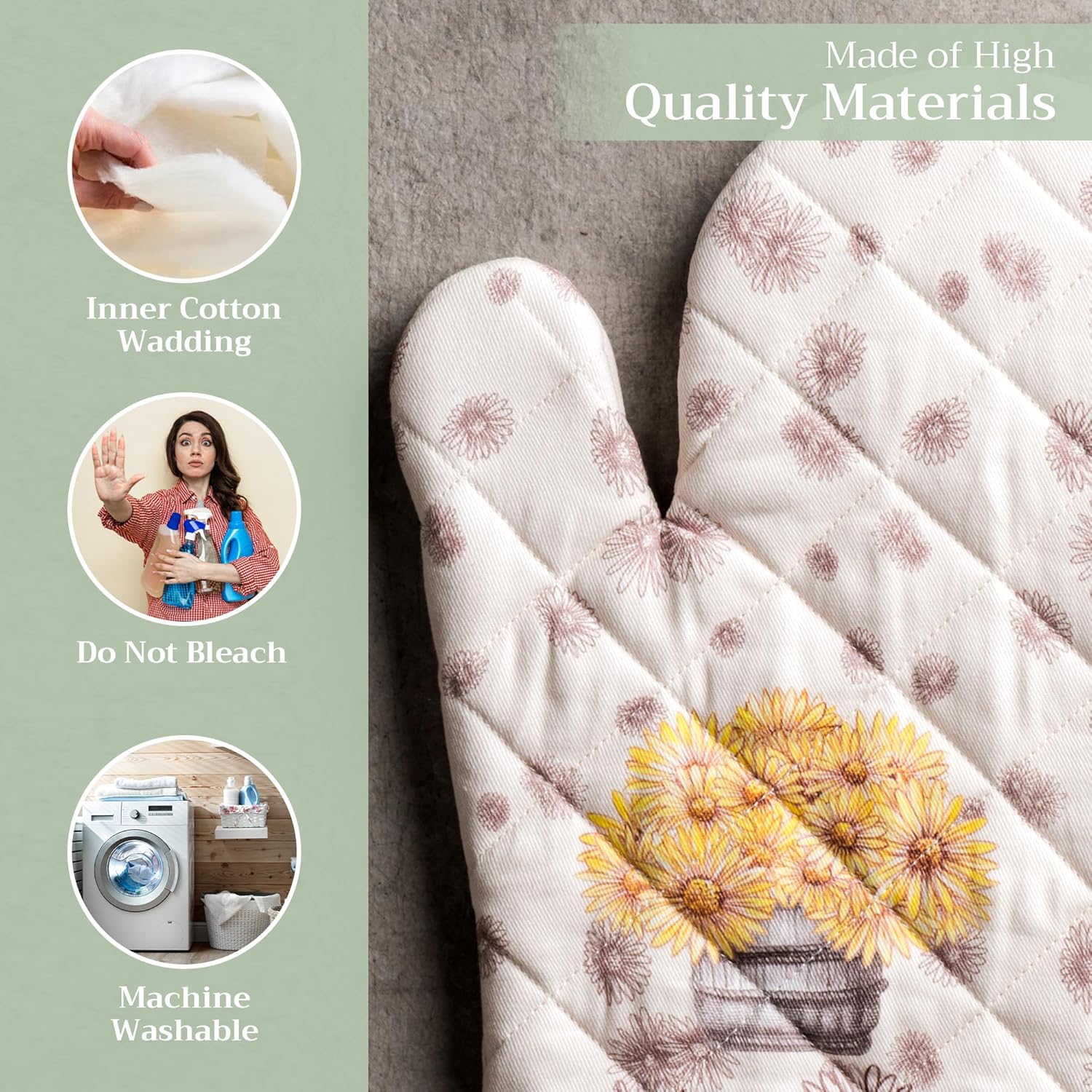 - 100% Quilted cotton: Crafted from thick, durable quilted cotton, this heat resistant oven mitt provides a soft feel, safe handling, and lasting performance. A must-have kitchen accessory for everyday cooking, roasting, or baking tasks
