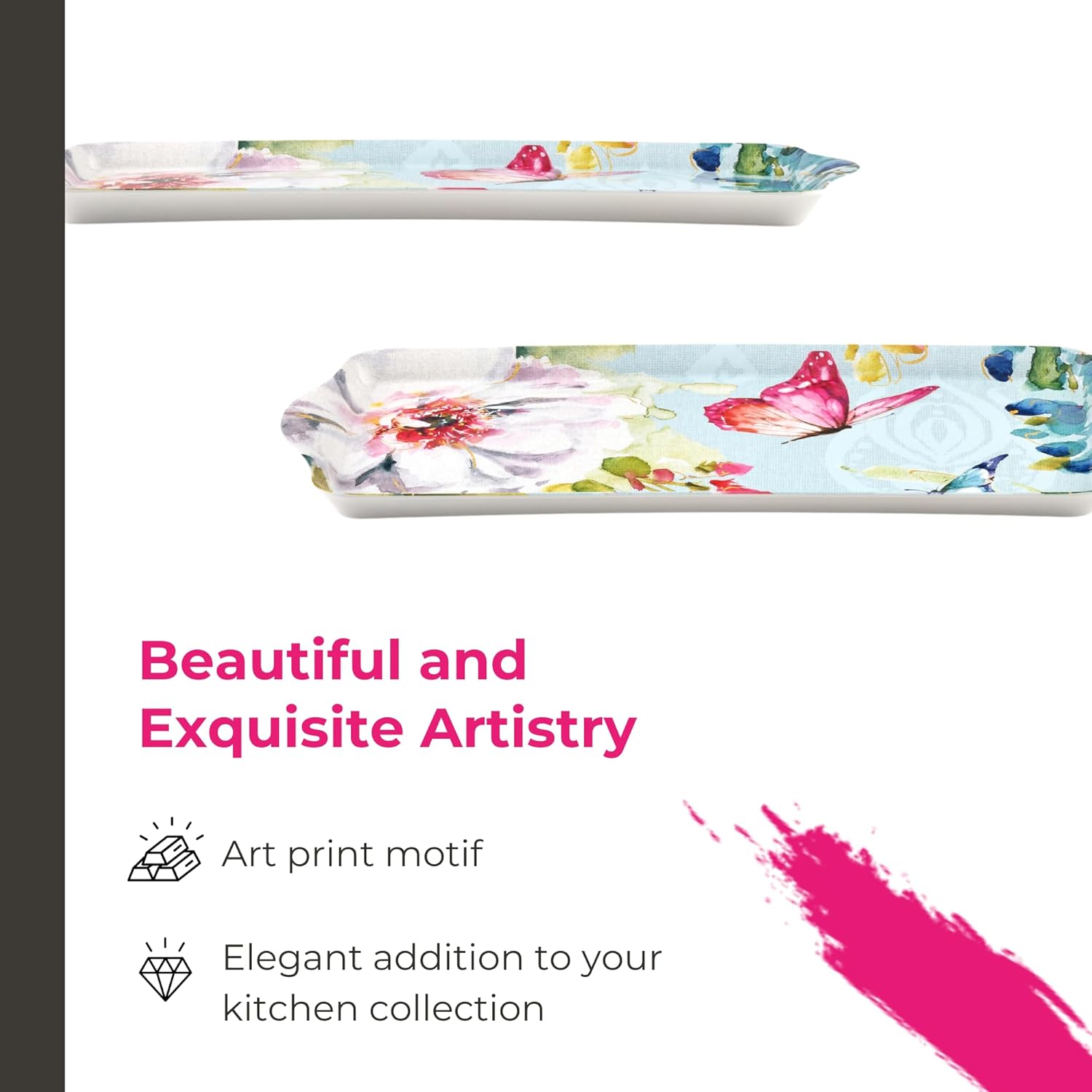 - Vibrant Artistic Design: This colorful floral tray features an expressive mix of painterly florals and abstract brushstrokes that bring energy, brightness, and creativity to your everyday serving moments.