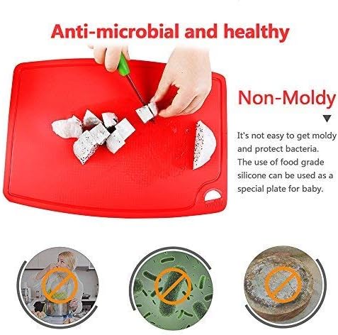 Extra Large Thick Silicone Cutting Boards for Kitchen 14.6'' x 10.43'' Flexible Cutting Chopping Boards/Mats Non-slip Deep Drip Juice Groove, Dishwasher Safe-Red
