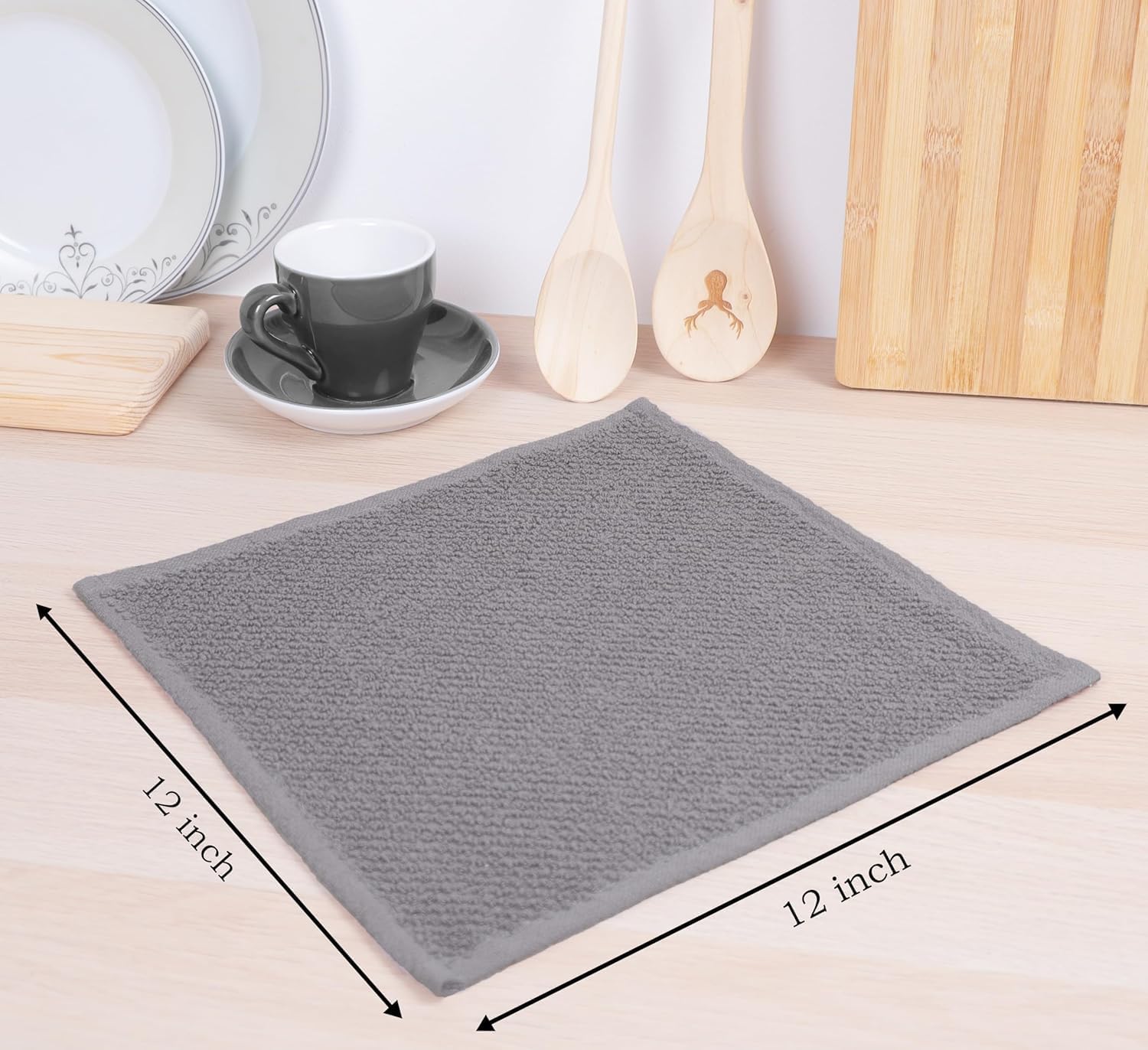 AMOUR INFINI Cotton Kitchen Dish Cloths Set of 8 – Highly Absorbent, Super Soft Premium Terry Cleaning Cloth (12"x12" Inch) Premium Dishcloths for Washing Dishes (Light Gray)