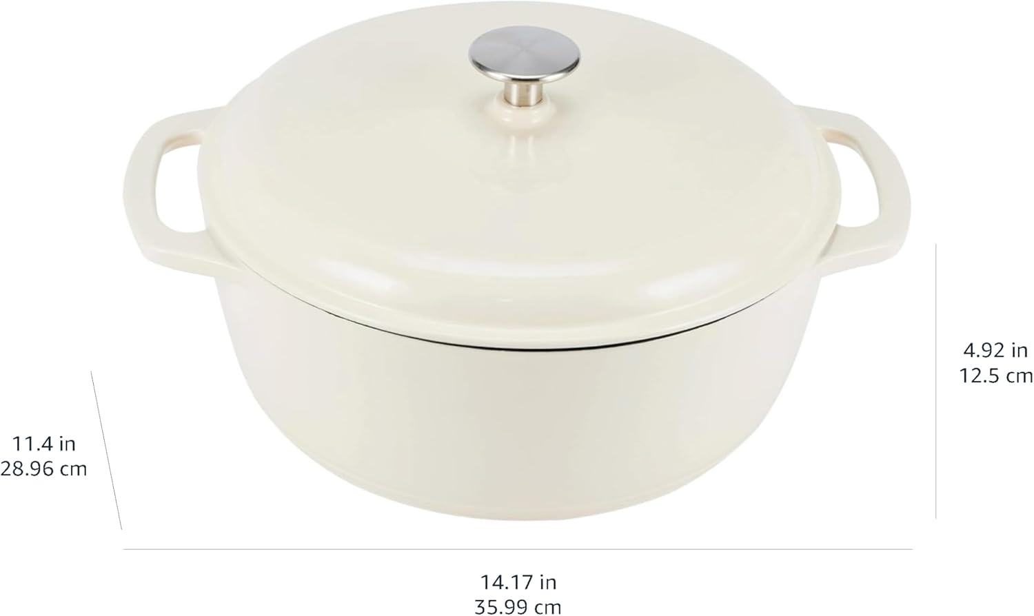 Amazon Basics Cast Iron Dutch Oven Pot with Lid, Enameled, Round, Dual Handles, Heavy-Duty, Medium, 6-Quart, White