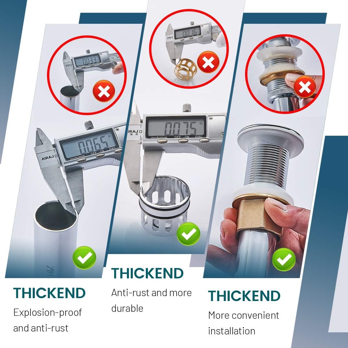 - 【EASY INSTALLATION】Anyone can install a pop up drain due to its simple construction,no tools required, the thickened and extended nut allow it to be mounted by bare hand.