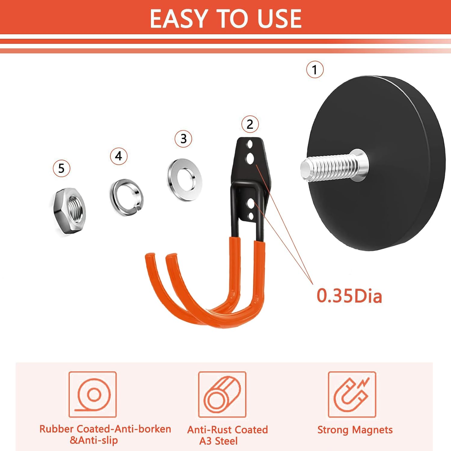 - 🧲[Aniti-Scratch Magnetic Hooks]: The magnetic hooks are sturdy and durable, the round black non-slip rubber coating on the bottom is designed to fix objects, protect its surface from scratches or damage, and prevent the hook from slipping and rusting.These magnetic garage hooks can be used indoors and outdoors.