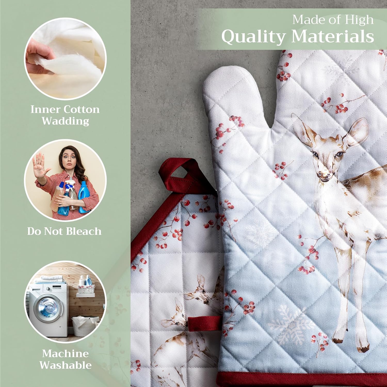 - Premium Quality: Crafted from quilted 100% cotton, this heat resistant oven mitt and pot holder set offers comfort, flexibility, and protection from hot cookware. Ideal cotton oven mitts for daily kitchen use and cooking safety