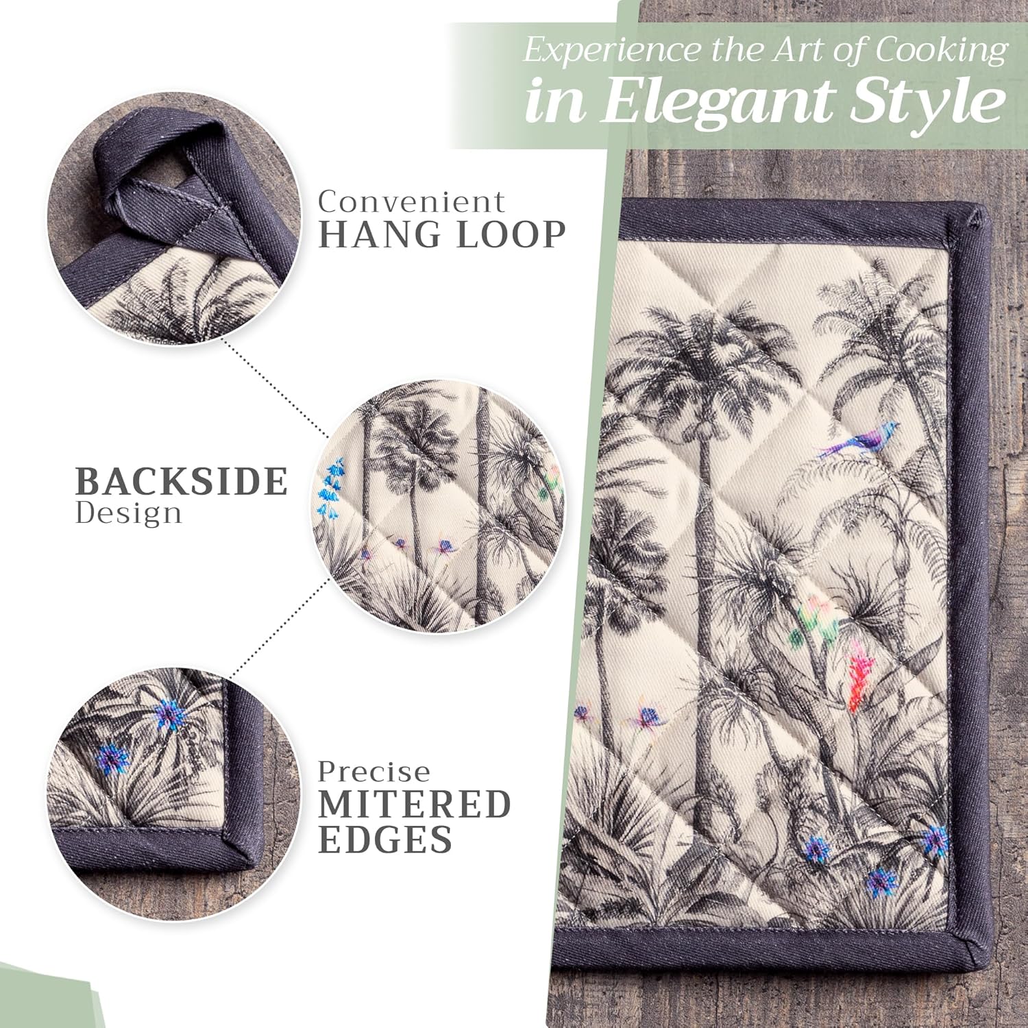 - 100% Quilted cotton: Made from premium quilted cotton, our pot holder ensures safe handling of hot pans or dishes. The soft, durable build provides excellent heat resistance and grip—perfect for everyday cooking and baking needs