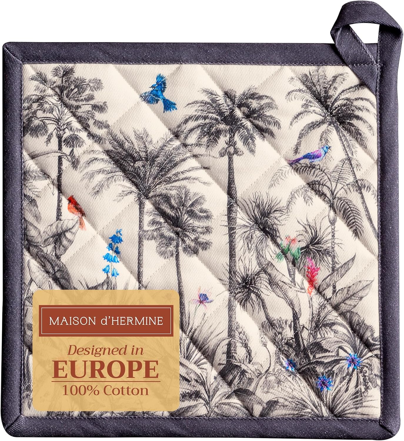 Maison d' Hermine Pot Holders 100% Cotton Heat Resistant Potholders 8" x 8" Hot Pads with Loop BBQ, Cooking, Baking, Grilling, Kitchen, Handling Hot Pans (Pack of 1, Amazonia)