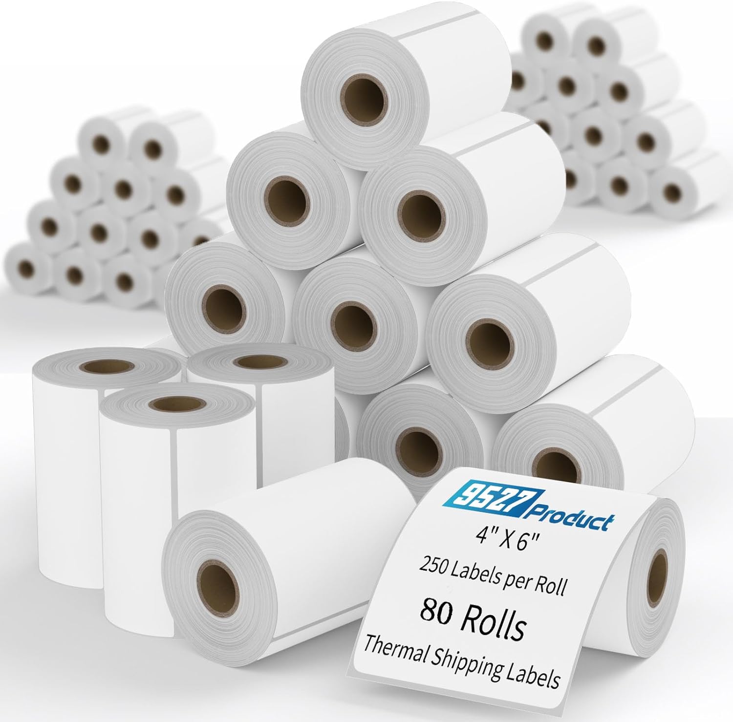 9527 Product 4x6 Blank Direct Thermal Shipping Labels for Zebra 2844 Zp-450 Zp-500 Zp-505,250 Labels/Roll,Total 80 Rolls