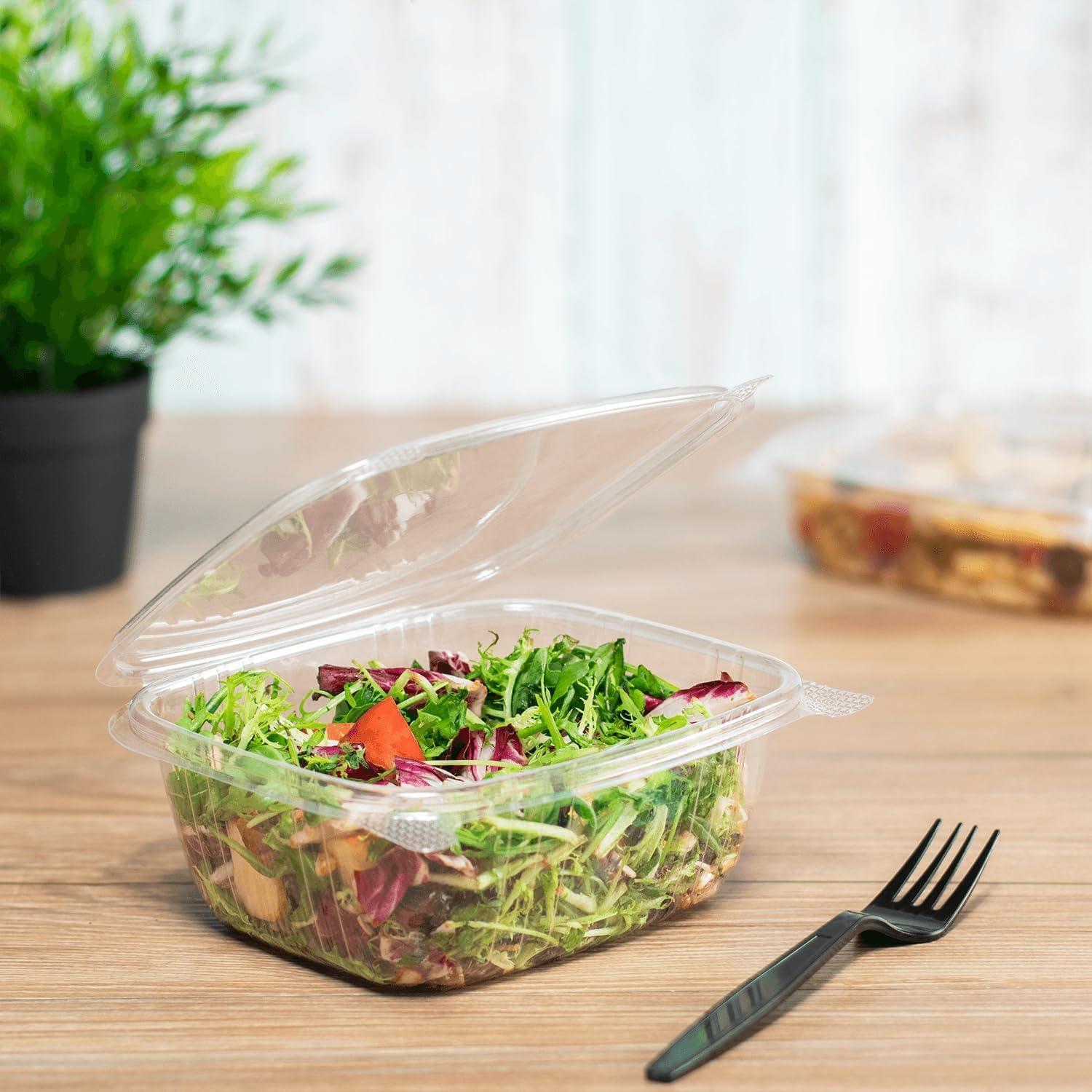 Karat 200 Count Clear PET Hinged Deli Take Out Containers - 32 oz Plastic Clamshell Food Containers, Disposable Square to Go Boxes, Ideal for Pasta Salads, Fruit, Deli Sides and More, FP-HDC32