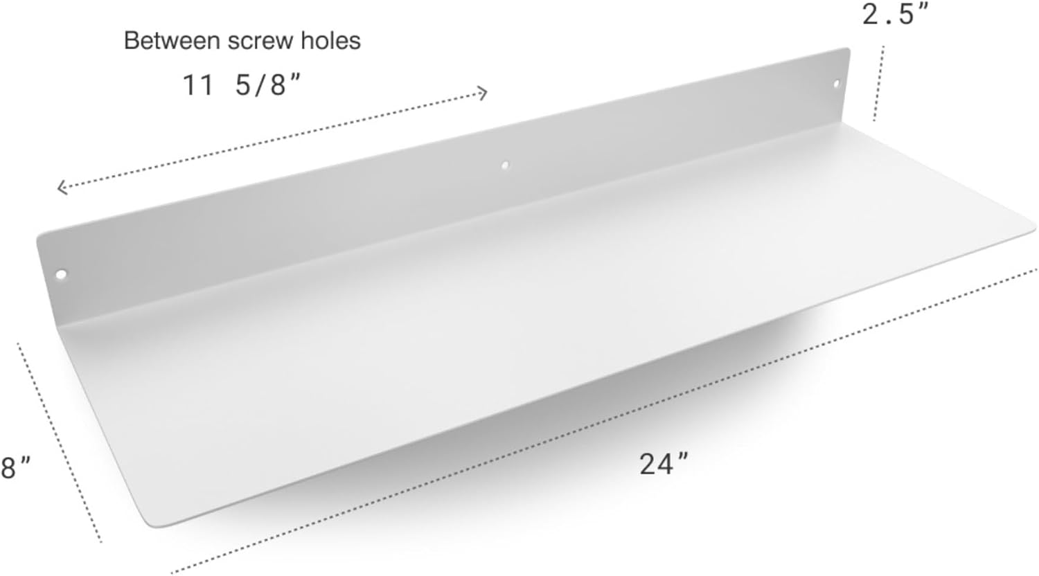 - DIMENSIONS & DETAILS: Measuring 24-inches long x 8-inches in depth, our steel floating shelf is made from 14 gauge raw steel and professionally powder coated white. The weight of the shelf is 5 LBS. It's perfect for displaying books, plants, bottles, picture ledges, and retail displays