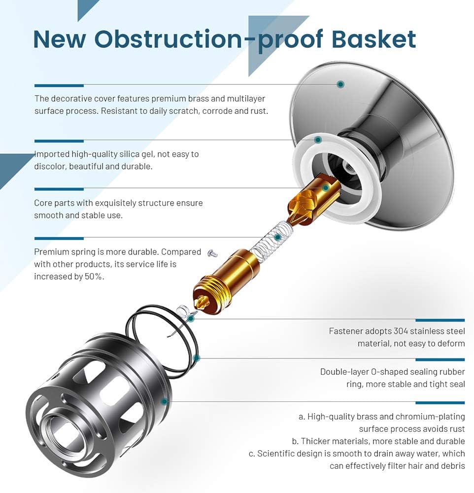 - ✔BUILD-IN STRAINER-Unlike regular puch button drain,this drain stopper has a anti-clogging basket strainer inside that neatly collecting hairs and prevents the drain from clogging up,stuff will not get into the drain, such as jewelry, ring, dirt and so on.