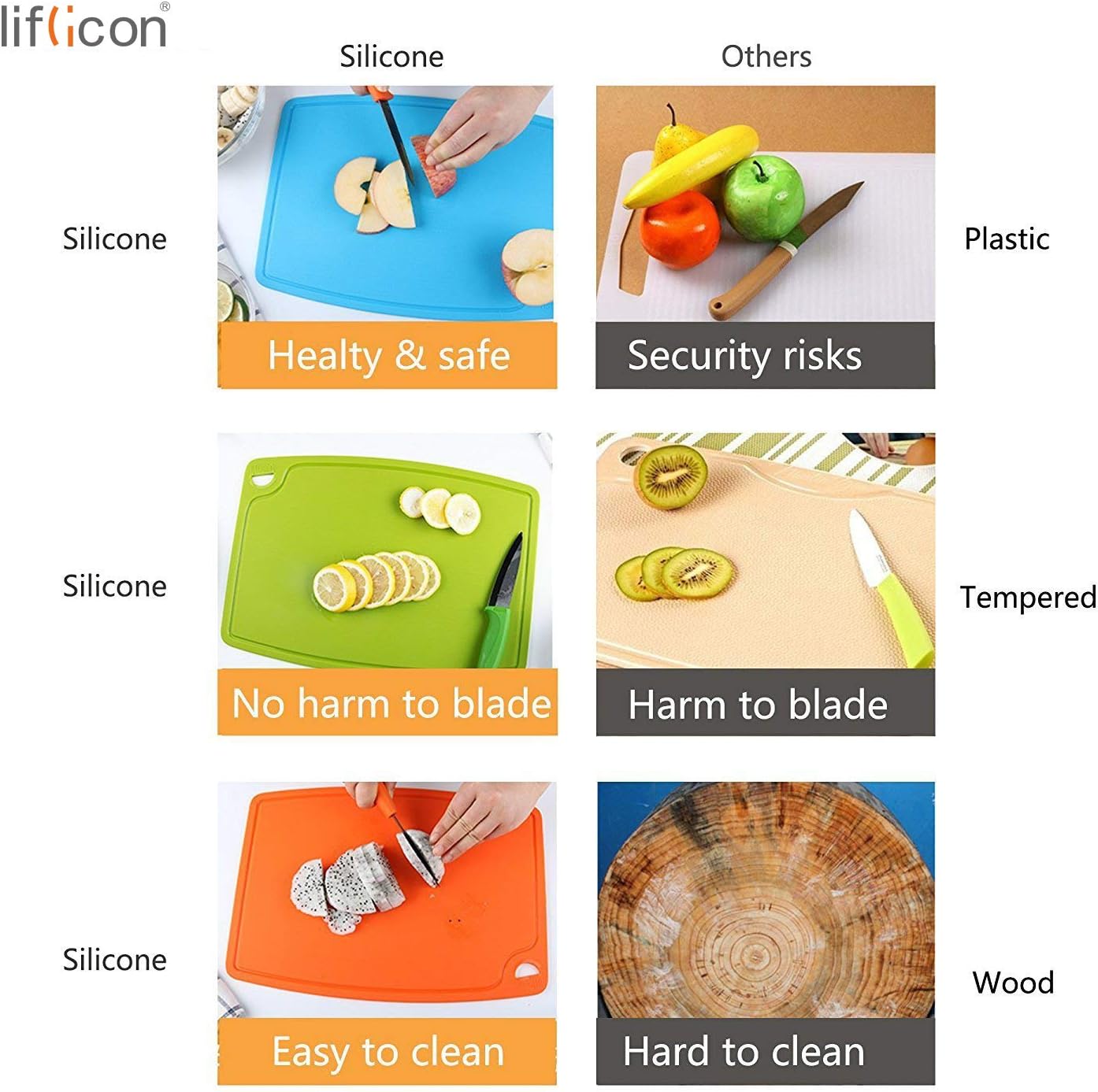 - 【HEALTHY &SAFE】: Certificated food safe Food-Grade Silicone. Heat resistant -40°F to 482°F(-40°C to 250°C) ,our silicone cutting boards and mats made from premium quality silicone is non-slip, heat proof and dishwasher safe.