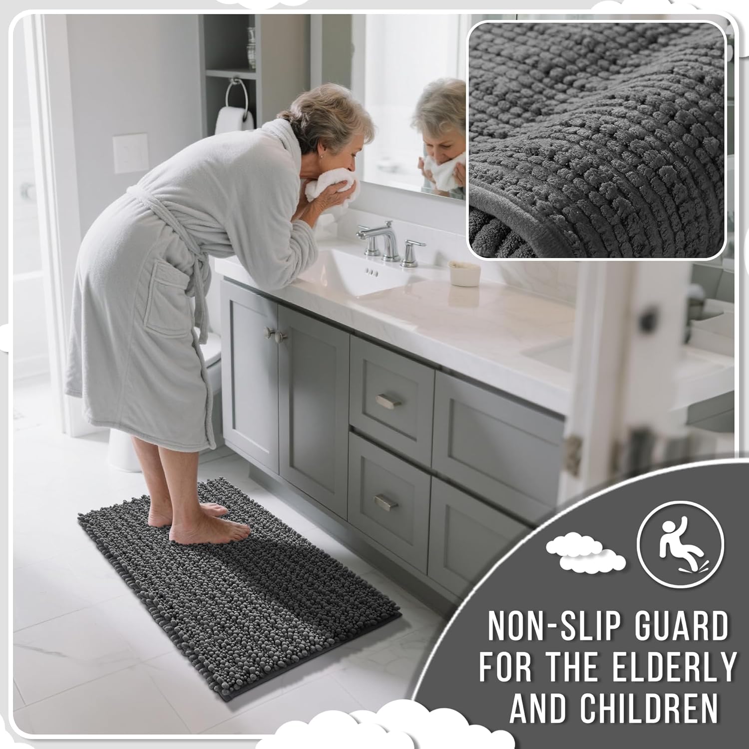 Yimobra Long Bathroom Rugs Non Slip Washable 44x24 Inch - Ultra Soft Absorbent Chenille Bath Mat, Quick Dry Shaggy Floor Carpet for Tub Shower, Dark Gray Home Decor Accessories