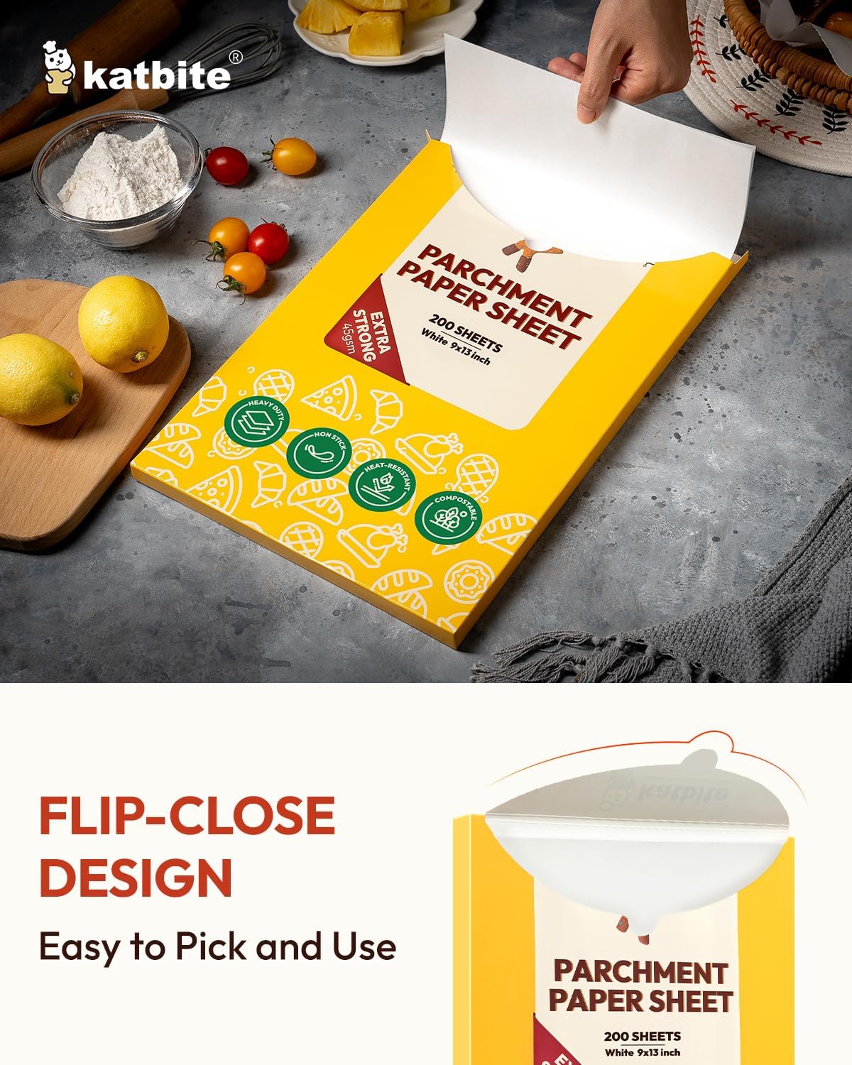 - NON-STICK & EASY TO CLEAN - Do you love baking but hate cleaning up? Katbite nonstick parchment paper for baking makes it possible and even works great! Food can be easily slide off from the baking tray and you just need to remove the paper and throw it away after baking.