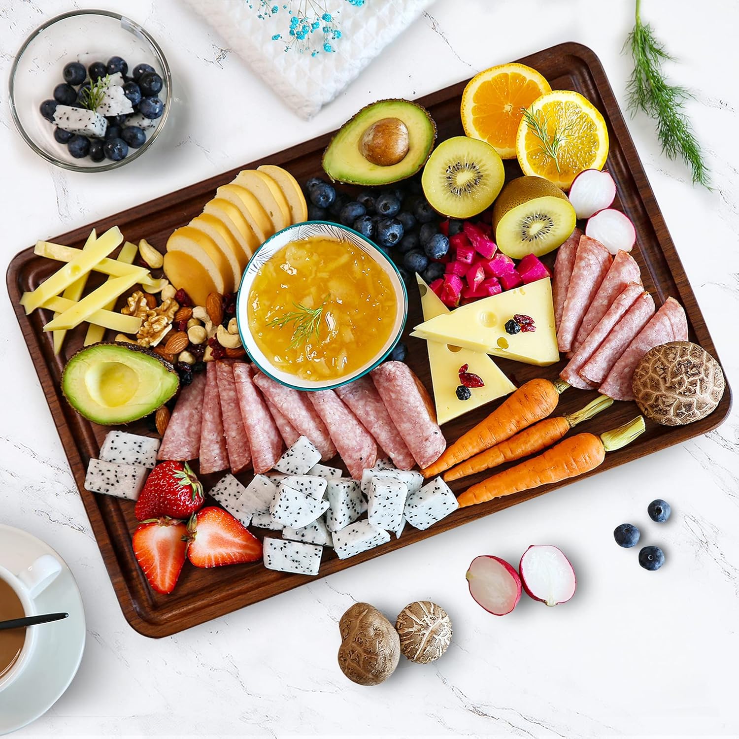 - Reversible, Juice Groove, Build-In Handles – These wooden cutting board feature a large smooth reversible surface for cutting different things separately. Wide and deep juice groove to catch excess liquid during food prep. And built-in handles for easy taking and moving. 5 sizes available to cover all your needs. Work perfect for carving grilled brisket, beef, pork, or ribs at barbecues, or as a cheese board, charcuterie board, serving tray.