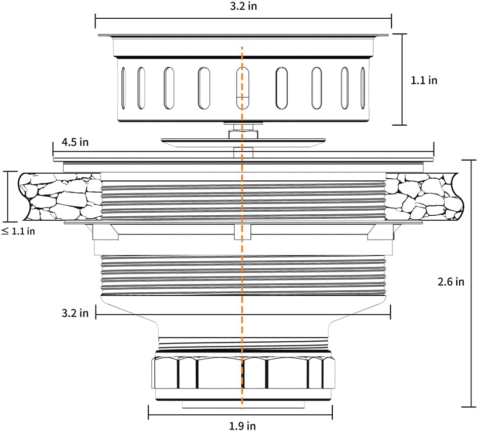 - 3-1/2 INCH KITCHEN SINK DRAIN: fit for most American standard kitchen sinks with Universal 3-1/2 inch drain hole
