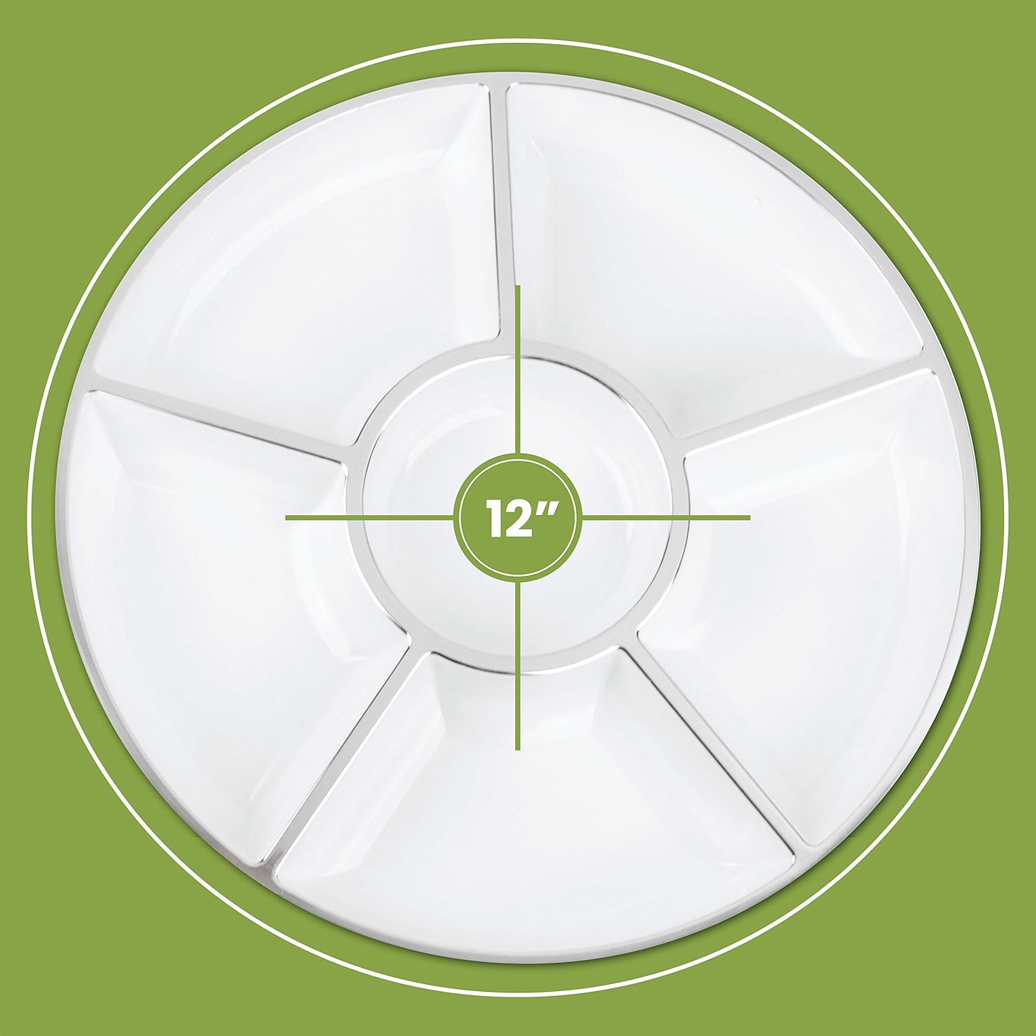 Plasticpro 6 Sectional Round Plastic Serving Tray/Platters White & Silver Pack of 4