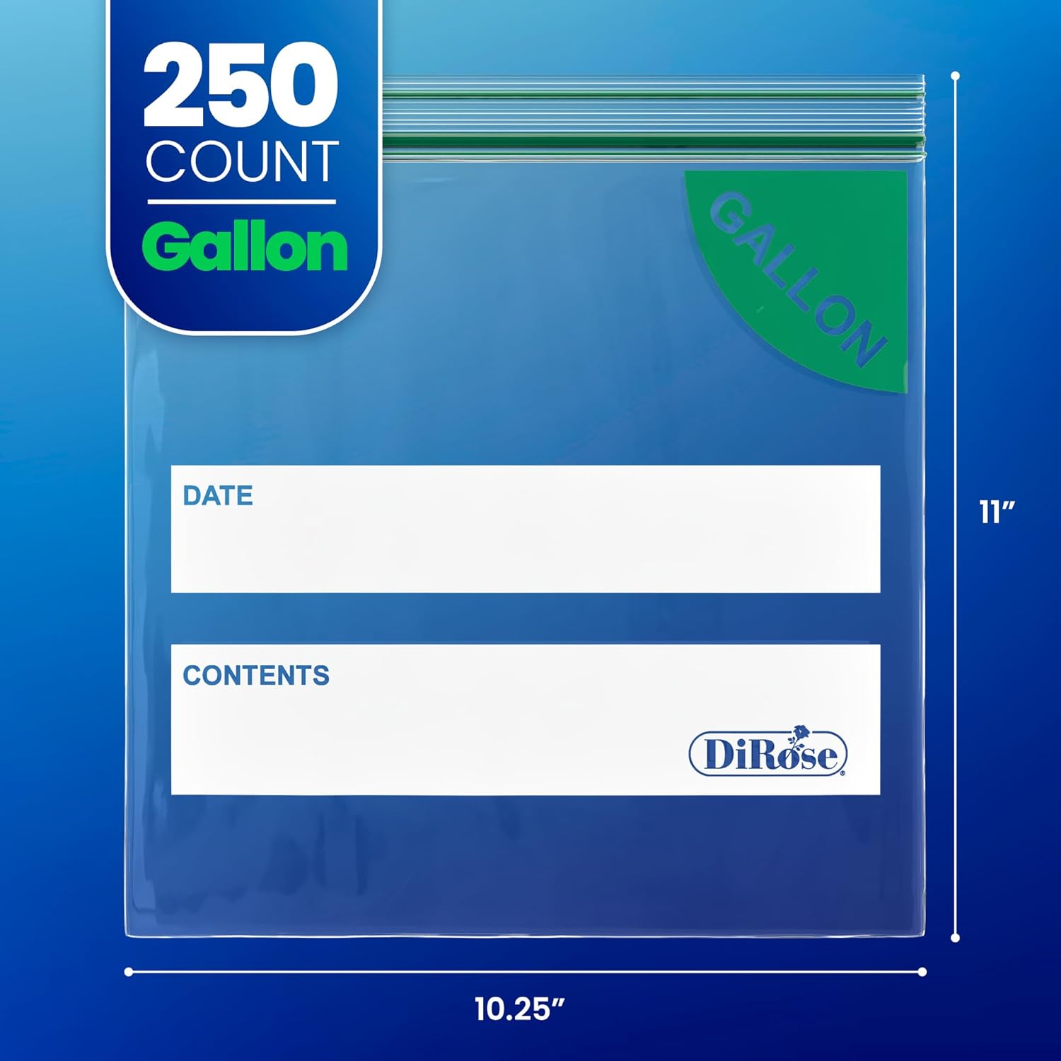 DiRose Gallon Bags Pack of 250 – 1 Gallon Reclosable Storage Bags – Practical and Durable Design – Food Safe Non-BPA Material – Easy Zip Closure – Ideal for Food, Snacks, Dog Treats, Organizing