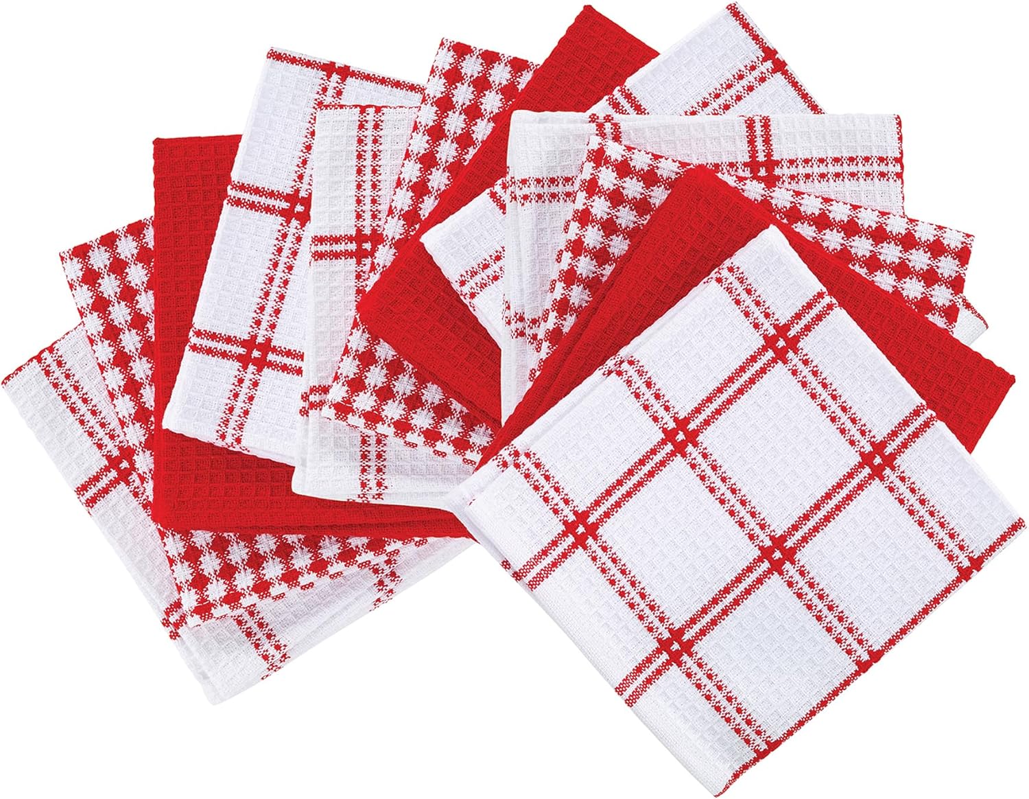 T-fal Premium Waffle Dish Cloths: Highly Absorbent, Super Soft Long Lasting - 100% Cotton, 12"x13" Towel for Cleaning & Drying, (12-Pack), Red