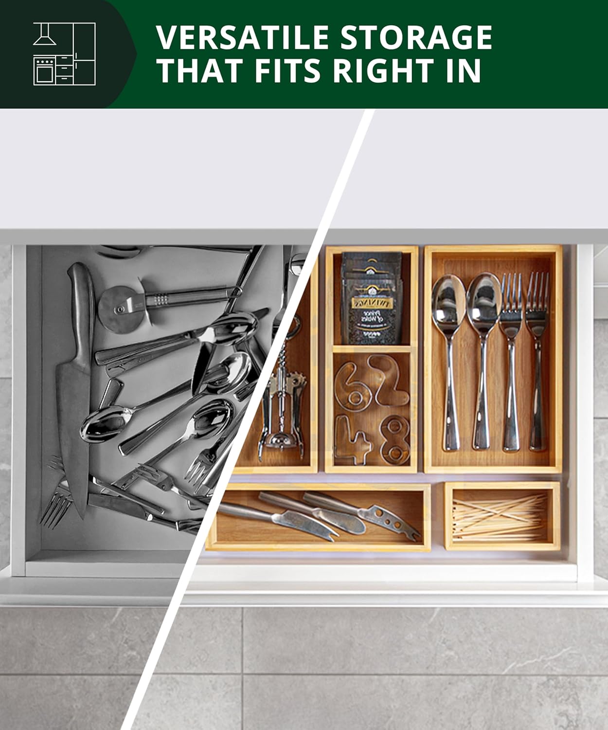 - 5-𝑷𝑰𝑬𝑪𝑬 𝑩𝑨𝑴𝑩𝑶𝑶 𝑺𝑻𝑶𝑹𝑨𝑮𝑬 𝑫𝑹𝑨𝑾𝑬𝑹 𝑶𝑹𝑮𝑨𝑵𝑰𝒁𝑬𝑹 𝑺𝑬𝑻: An ideal deep drawer organizer for everyday use, these storage boxes are both beautiful & functional, making them the perfect compliment to your home decor. RCW delivers quality organizers & storage bins, so choose our bamboo storage box set of 5, perfect for home, kitchen, bathroom, office, drawer, art supplies, and crafts organization. Easy to place into and remove from any drawer, the boxes may also be used for countertop essentials organization