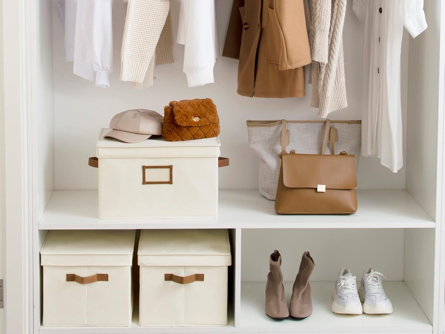 - Closet storage bins with 2 PU sewn-in handles can support a weight of up to 30 pounds.