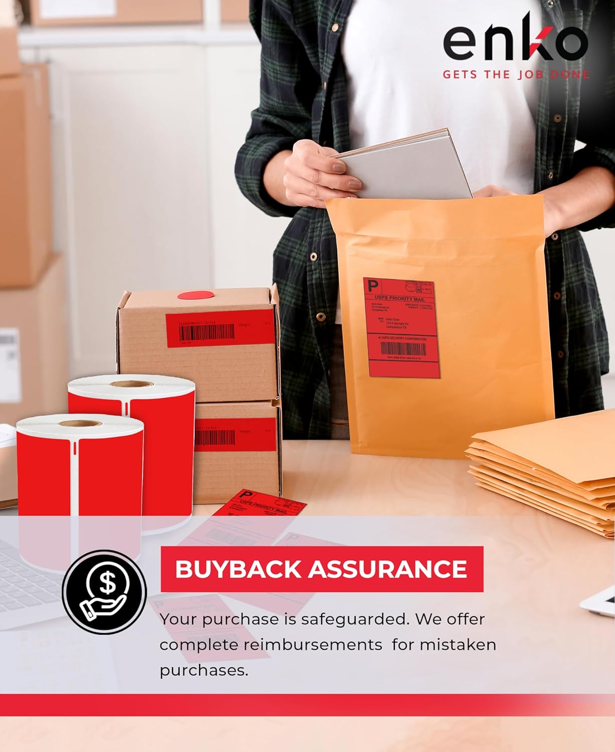 - Package includes (6 Rolls, 1320 Labels) Red Direct Thermal Address & Shipping Labels compatible with Zebra and Dymo 1744907 (each roll contains 220 labels of 4 x 6 inches)