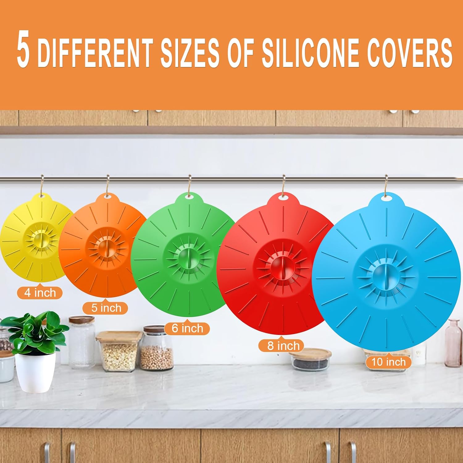 - 【Multi-Size Universal Cover】:Silicone Bowl Lids are Fashionable,colorful and in 5 Universal sizes:10Inch,8Inch,6Inch ,5Inch,4Inch so this silicone lids for bowls set is almost suitable for cups, mugs, pots, frying pans, glasses and bowls