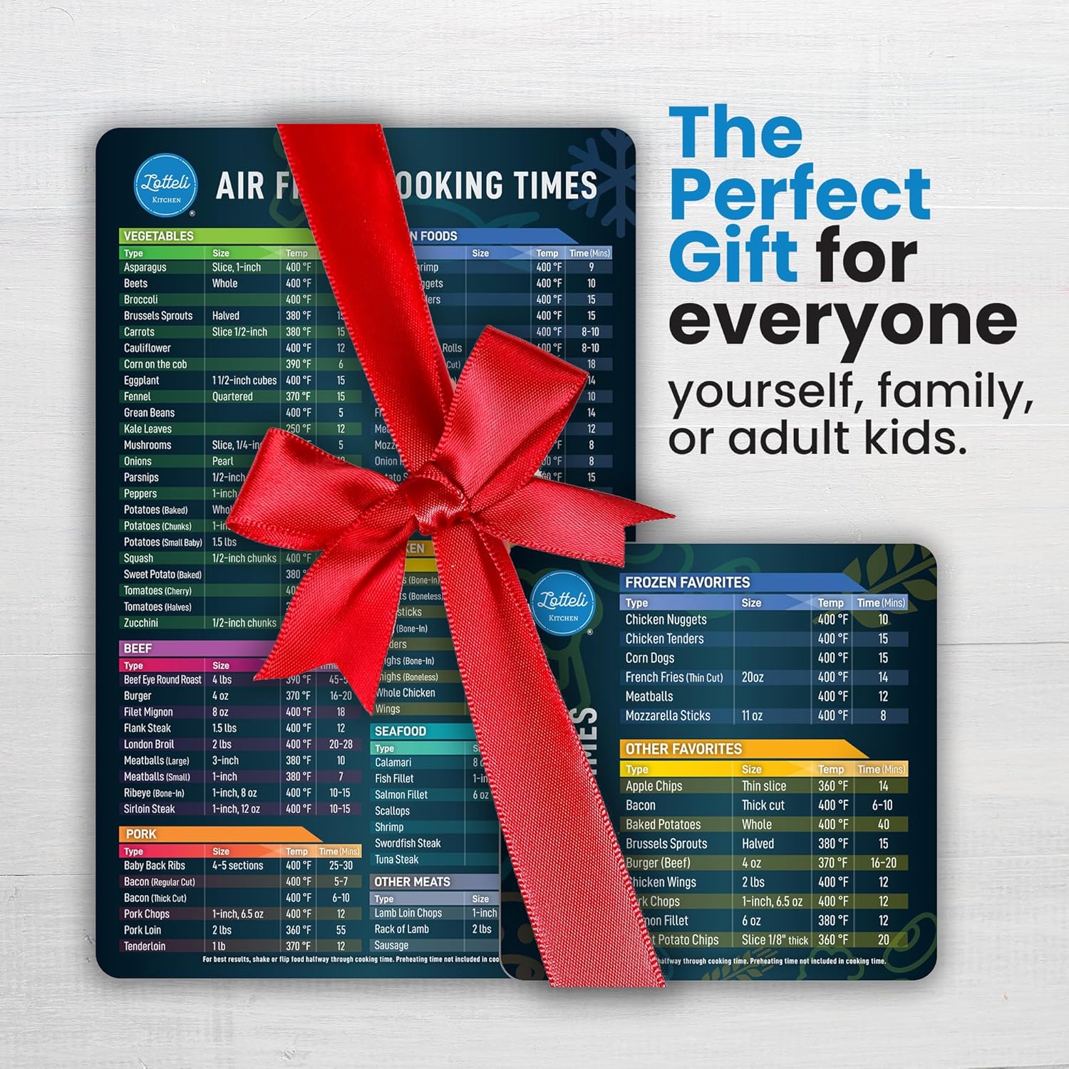 - PERFECT HOUSEWARMING GIFT: Presented in attractive packaging, our air fryer cheat sheet magnet is a thoughtful gift for anyone who loves to cook. Perfect for anyone, Lotteli makes cooking easier and more enjoyable for both experienced chefs and beginners alike.