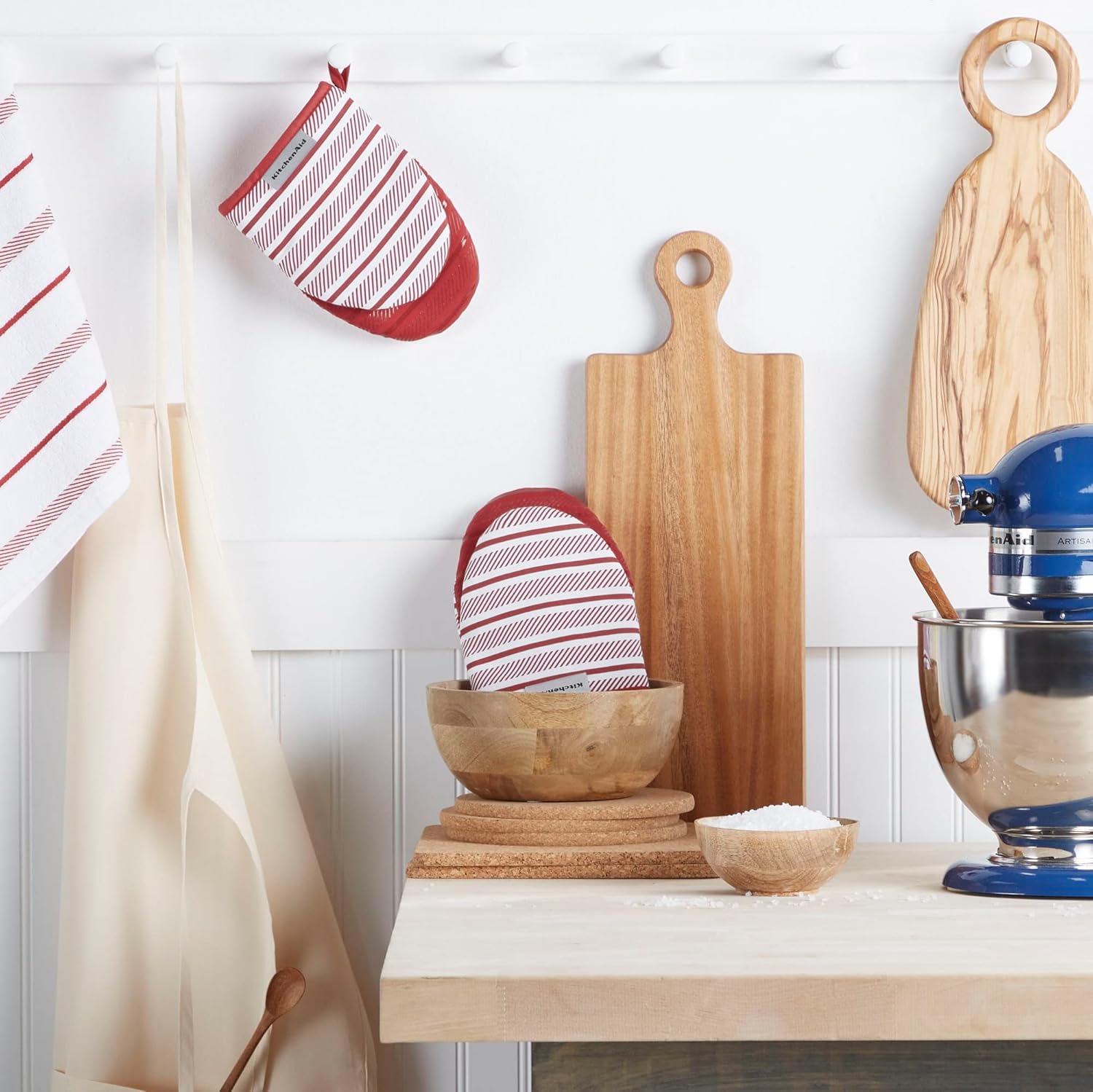 - SET OF TWO – Shield your hands while handling hot cookware. This set includes two (2) Kitchen Aid Albany Mini Mitts, each measuring 5.5" W x 8" L.
