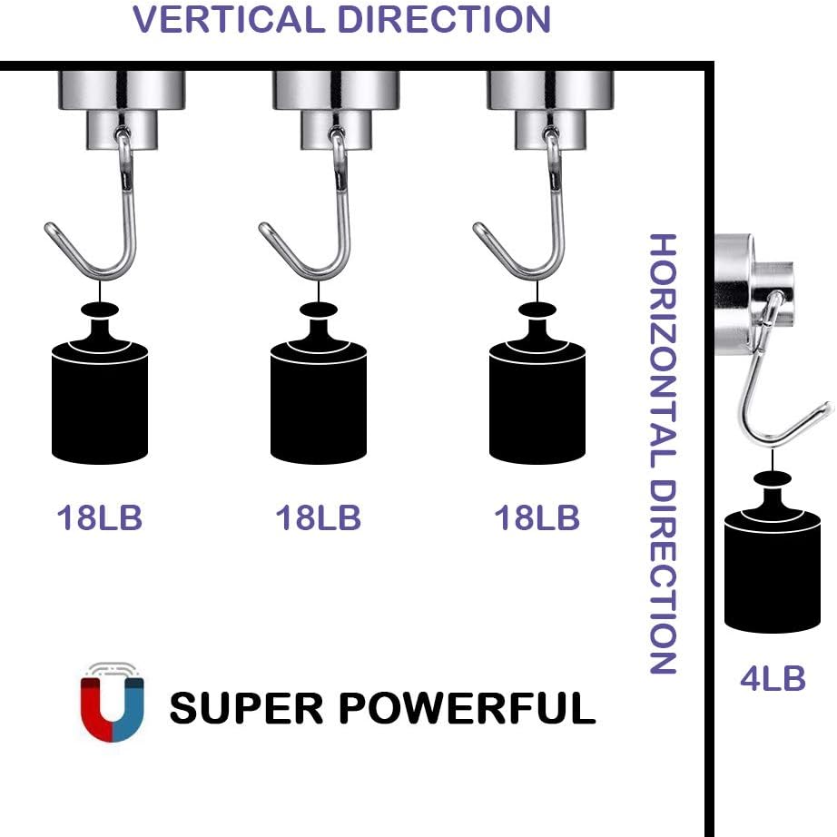 - 【Powerful Mini Magnetic Hooks】Do not underestimate the strength of these tiny magnetic hooks. With a compact diameter of 15mm, they may be small, but they boast a maximum vertical load of 18 pounds and a horizontal load of 4 pounds. These potent magnet hooks can securely hold and display calendars, kitchen utensils, keys, or any other lightweight items on your refrigerator or any magnetic surface