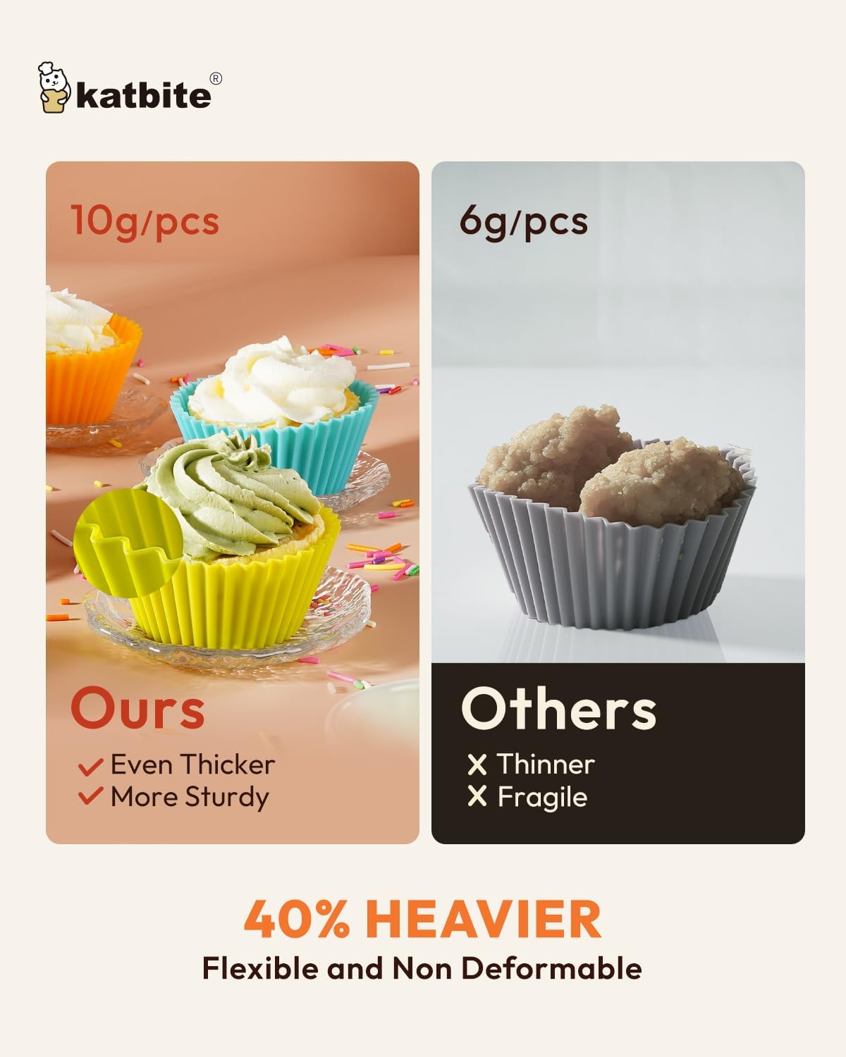 - WACKER FOOD GRADE SILICONE & REUSABLE:Silicone muffin liners are made of WACKER food-grade silicone, odor resistant, no smells, no leaking dyes, no chemical coatings, eco-friendly premium silicone pinch approved, the color don't fade. Heavy duty 10g/pc baking cupcake cups stronger than regular 6g/pc, the shape of the cake will keep good after baked, no deformation, is truly reusable baking cups.