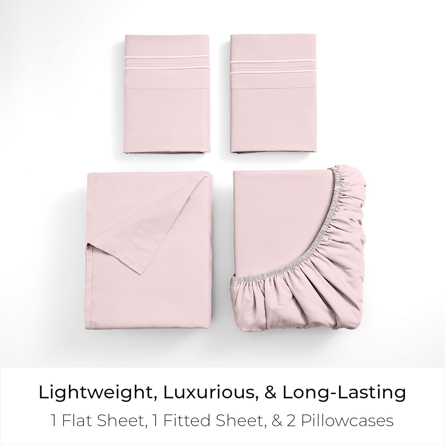 Mellanni California King Sheets Set - 4 PC Iconic Collection Bedding - Hotel Luxury, Extra Soft, Cooling Bed Sheets - Wrinkle, Fade, Stain Resistant (Cal King, Blush Pink)
