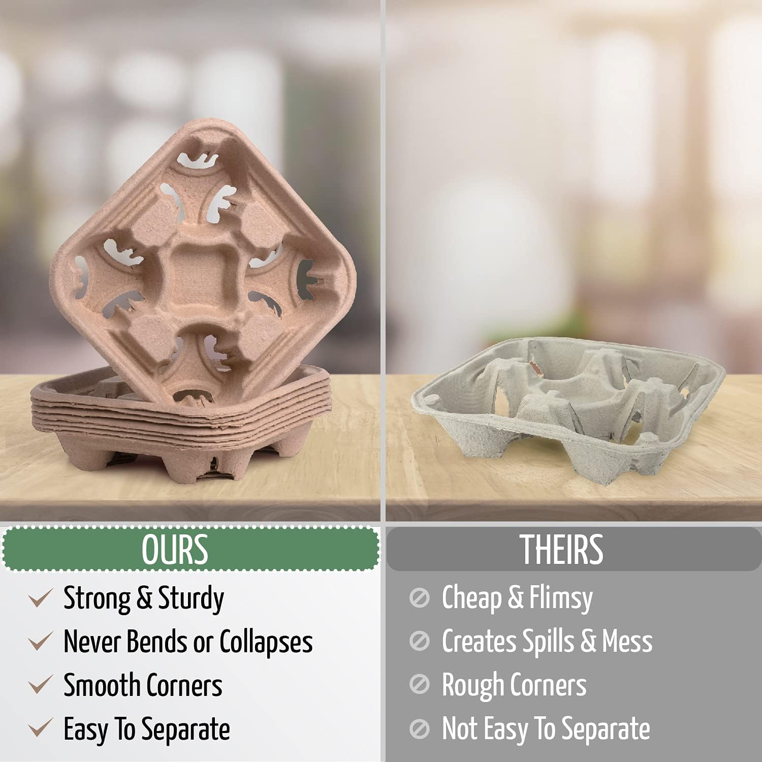 4 Cup Carrier Tray (50-Pack), No-Spill, No-Mess Disposable Holder, Biodegradable, Eco-Friendly for Delivery of Hot or Cold Drinks, Ideal To Go Carrier for Car Food Delivery