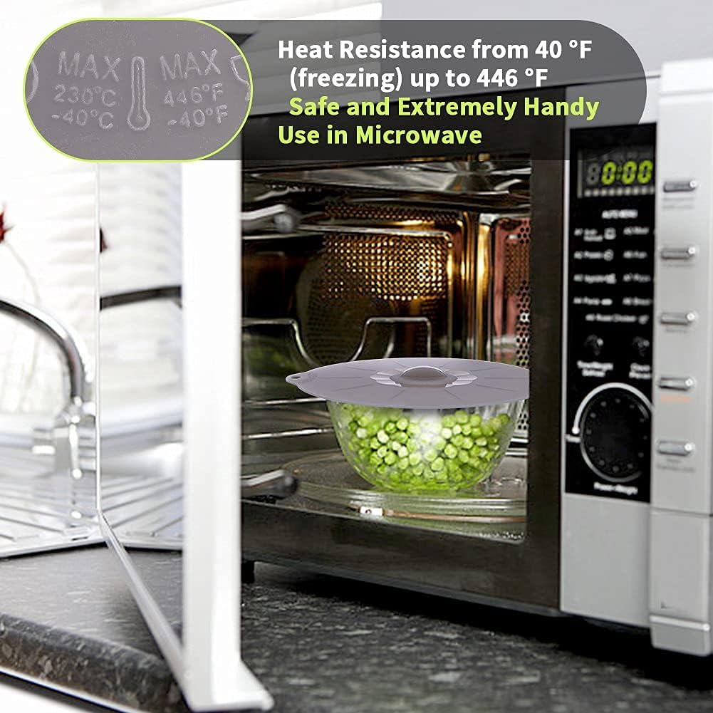 - ❤【MULTI PURPOSE USE】-The silicon lids total 5 Sizes- 4 inch, 6 inch, 8 inch, 10 inch and extra large 12 inch silicone suction lids will fit almost anything,such as Bowls,Pots, Pans, Dishs, Plates,Coffee Cup Jar,etc.The silicone lid are great for cooking and baking .Also silicone pot cover perfectly and safely use for Microwave, StoveTop, Oven, Fridge and Freezer Safe. The dish cover withstands temperatures from -40 degrees F to 446 degrees F