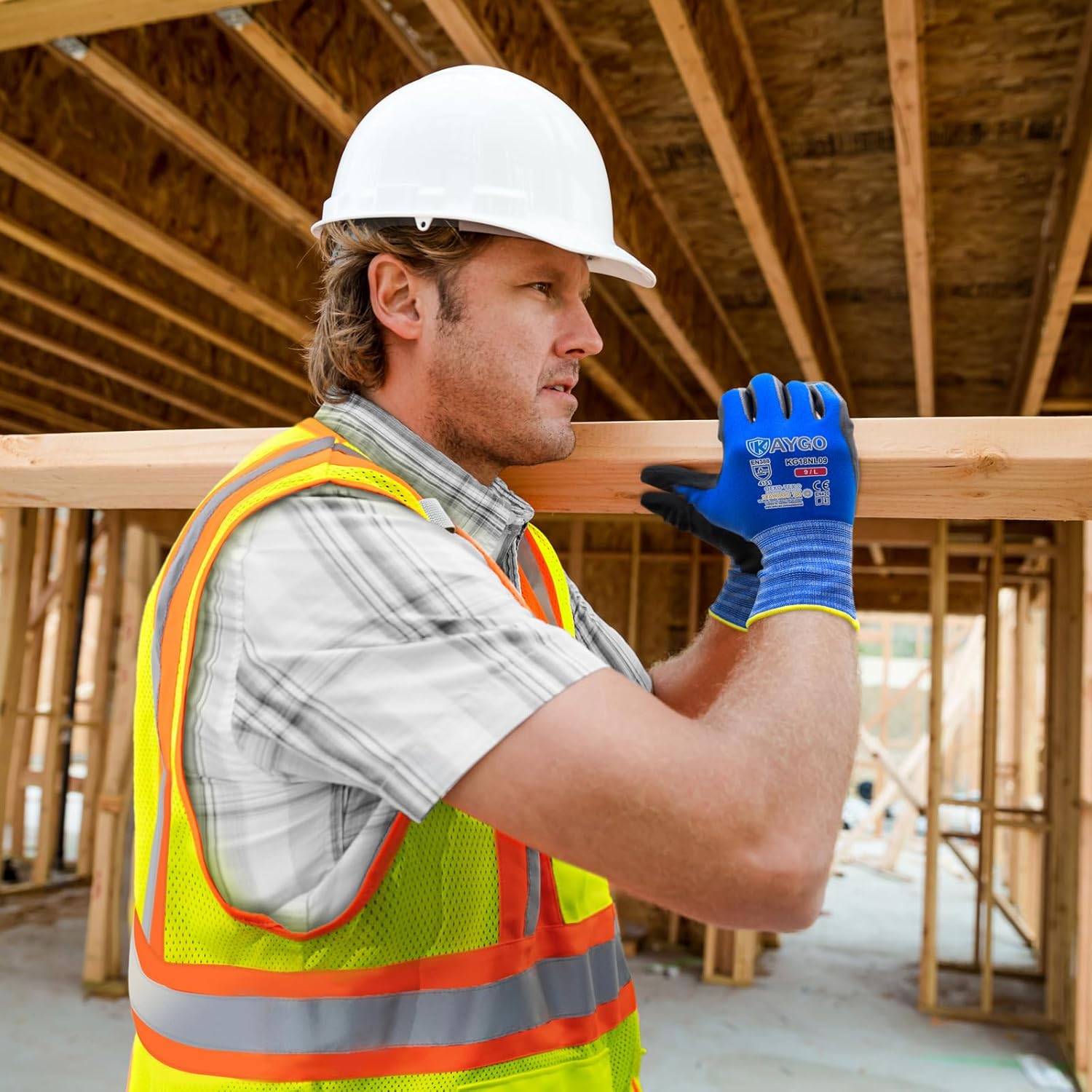 KAYGO Safety Work Gloves MicroFoam Nitrile Coated, 12 Pairs, KG18NB,Seamless Knit Nylon Glove with Black Micro-Foam Nitrile Grip,Ideal for General Purpose,Automotive,Home Improvement,Blue,M