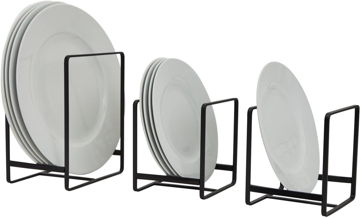 Juvale 3-Piece Kitchen Cabinet Organizer Shelf - Black Iron, 2 Sizes for 8" & 10" Plates - Cutting Board Organizer, Pot Lid & Paper Plate Holder
