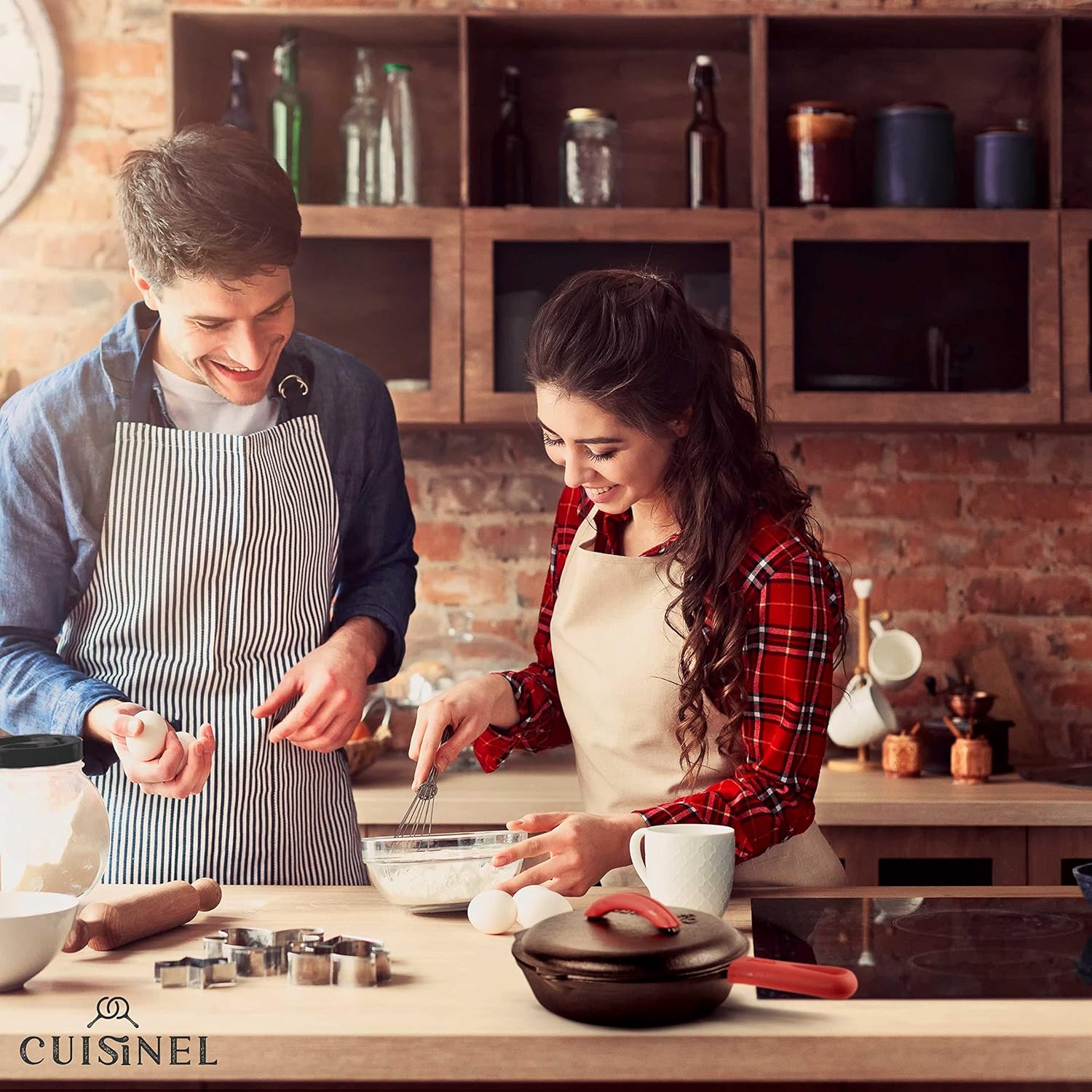 Cuisinel Cast Iron Skillet with Lid - 10"-inch Pre-Seasoned Covered Frying Pan Set + Silicone Handle and Lid Holders + Scraper/Cleaner - Use Indoor/Outdoor, Oven, Stove, BBQ, Fire, Grill Cookware