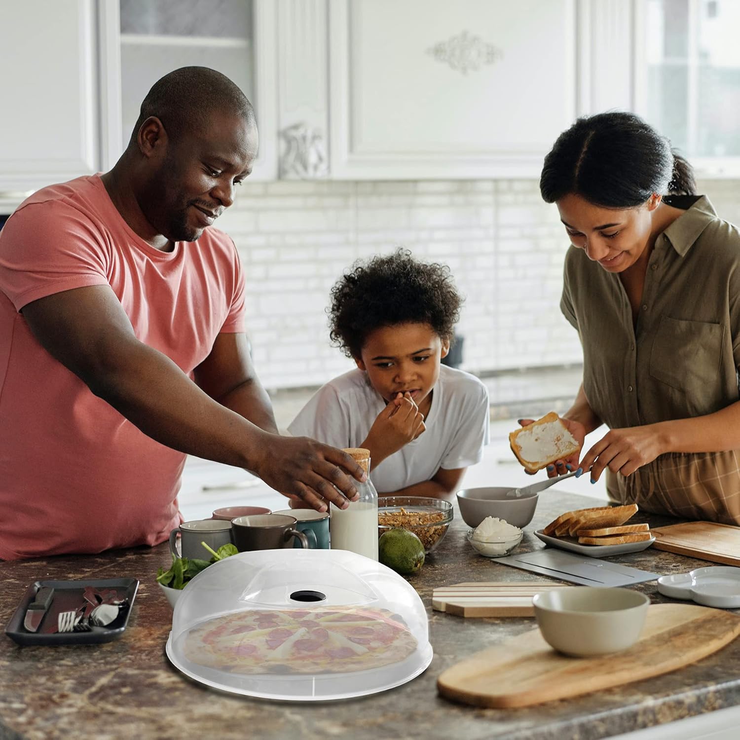 - 【KEEPS MICROWAVE CLEAN 】: Microwave splatter cover keeps the splatter off the microwave;keeps steam contained for more even reheating;easy to clean,perforated steam vents to allow the moisture to escape