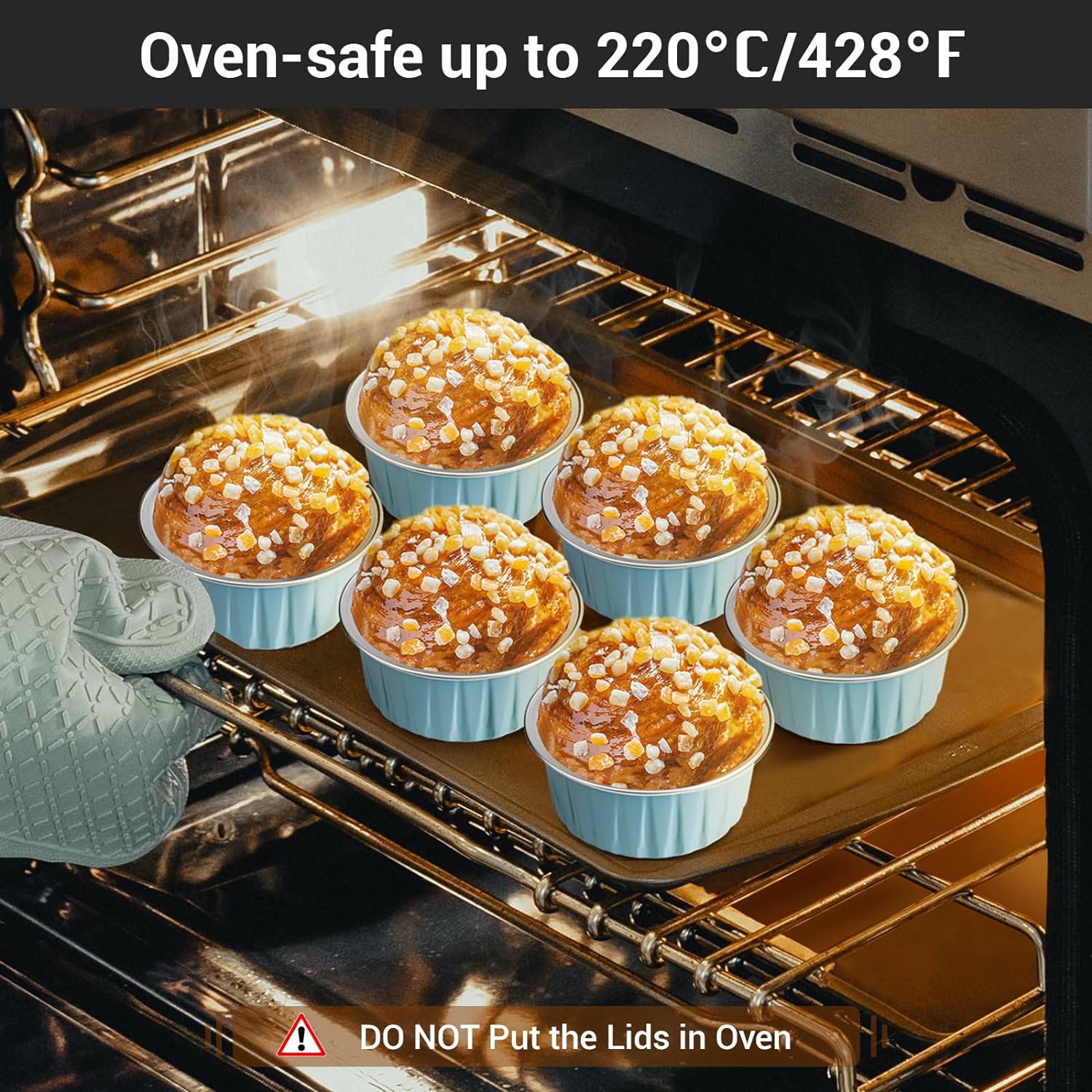 - 【 Aluminum Foil】-Made from sturdy thick aluminum foil with mooth surface, enables our ramekin cups with faster heating.