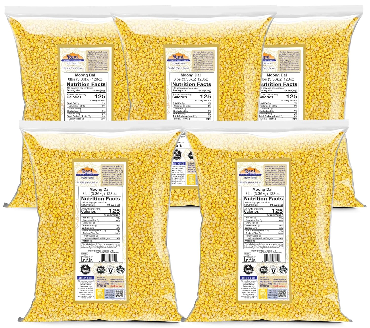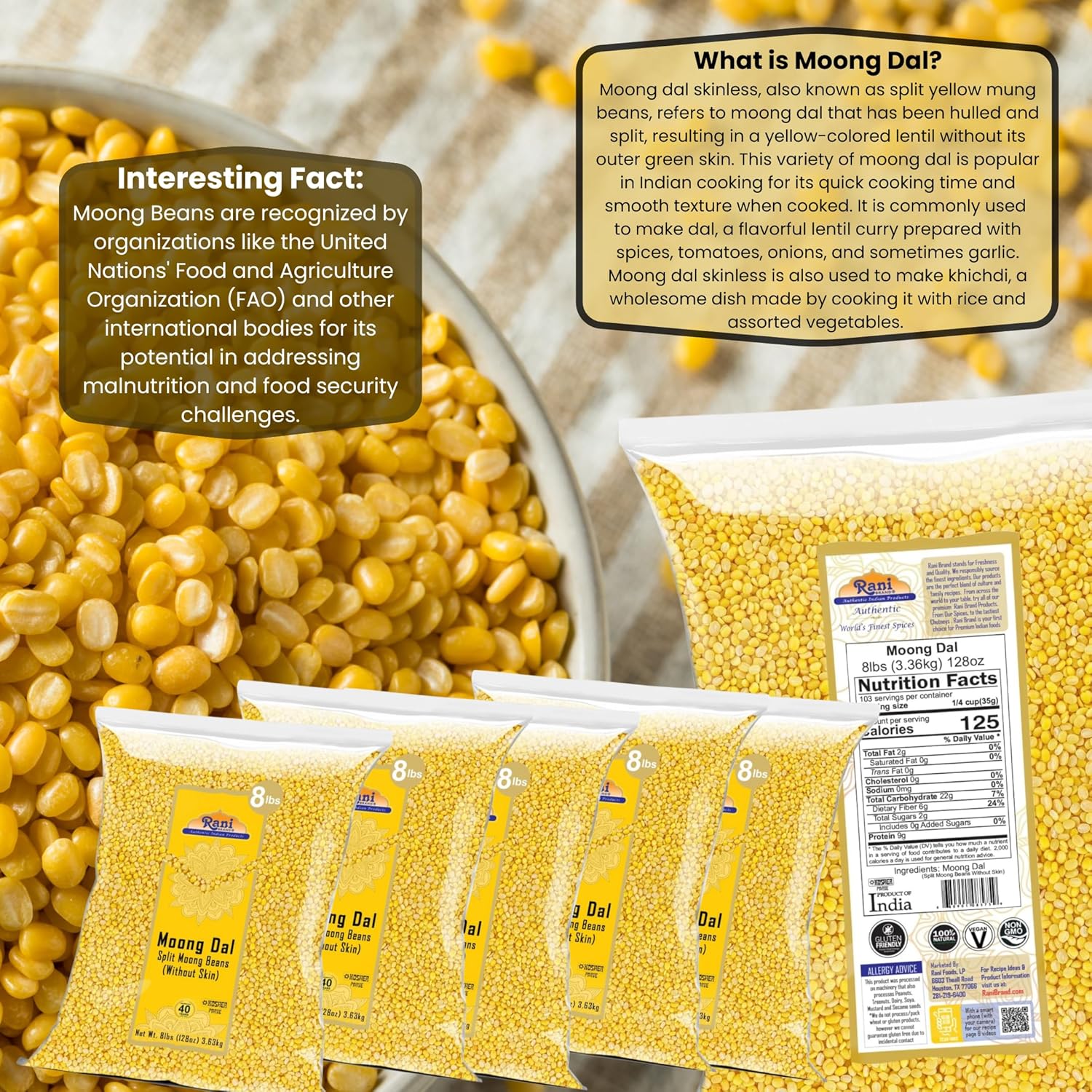 Rani Moong Dal (Split Mung Beans Without Skin) Lentils Indian 128oz (8lbs) 3.63kg x Pack of 5 (Total 40lbs) Bulk ~ All Natural | Gluten Friendly | Non-GMO | Kosher | Vegan | Indian Origin
