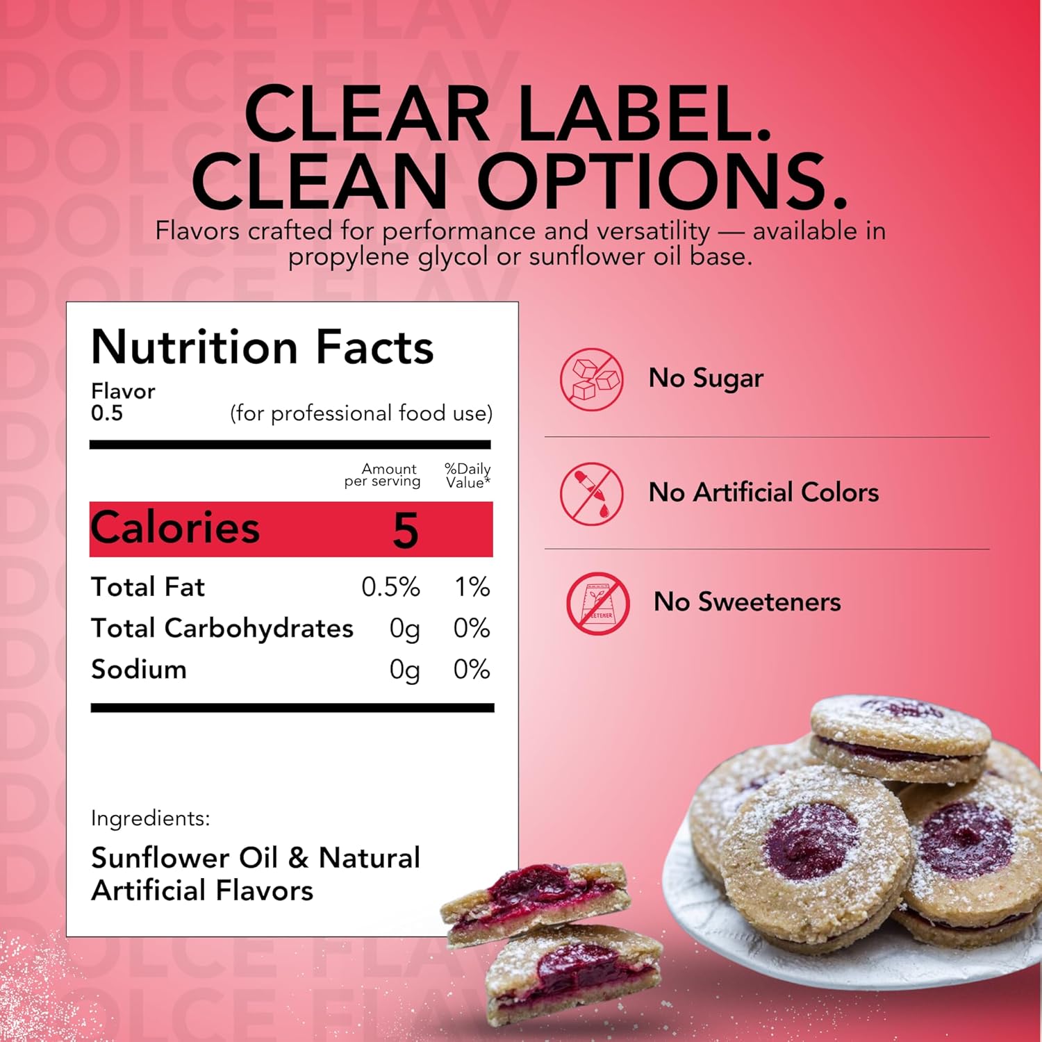 Dolce Flav Raspberry Extract (Oil-Soluble) 1 Gallon – Kosher, Sugar-Free, Concentrated Raspberry Flavoring for Chocolates, Candies & Baking