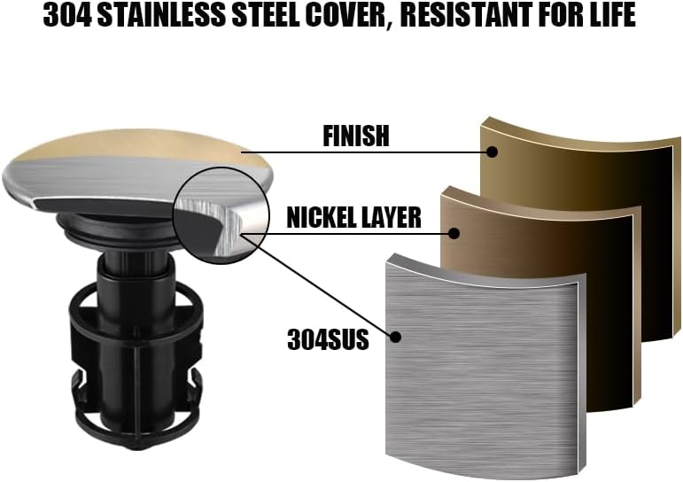 - ✓【304SS TOP SURFACE+ABS&PP BODY】The top surface of bathroom sink drain is made of high quality 304 stainless steel with a multi-layer brushed gold finish. Bottom pipe is made of PP and ABS. This combined structure not only resists rust, but also resists corrosion and cracking.