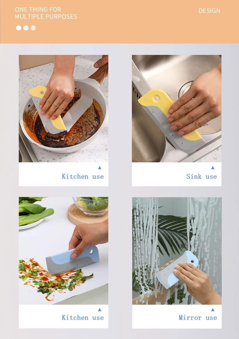 - Kitchen use :Easily scrape water stains and sundries off kitchen countertops, and you can scrape the leftovers off the dishes and put them in the dishwasher.