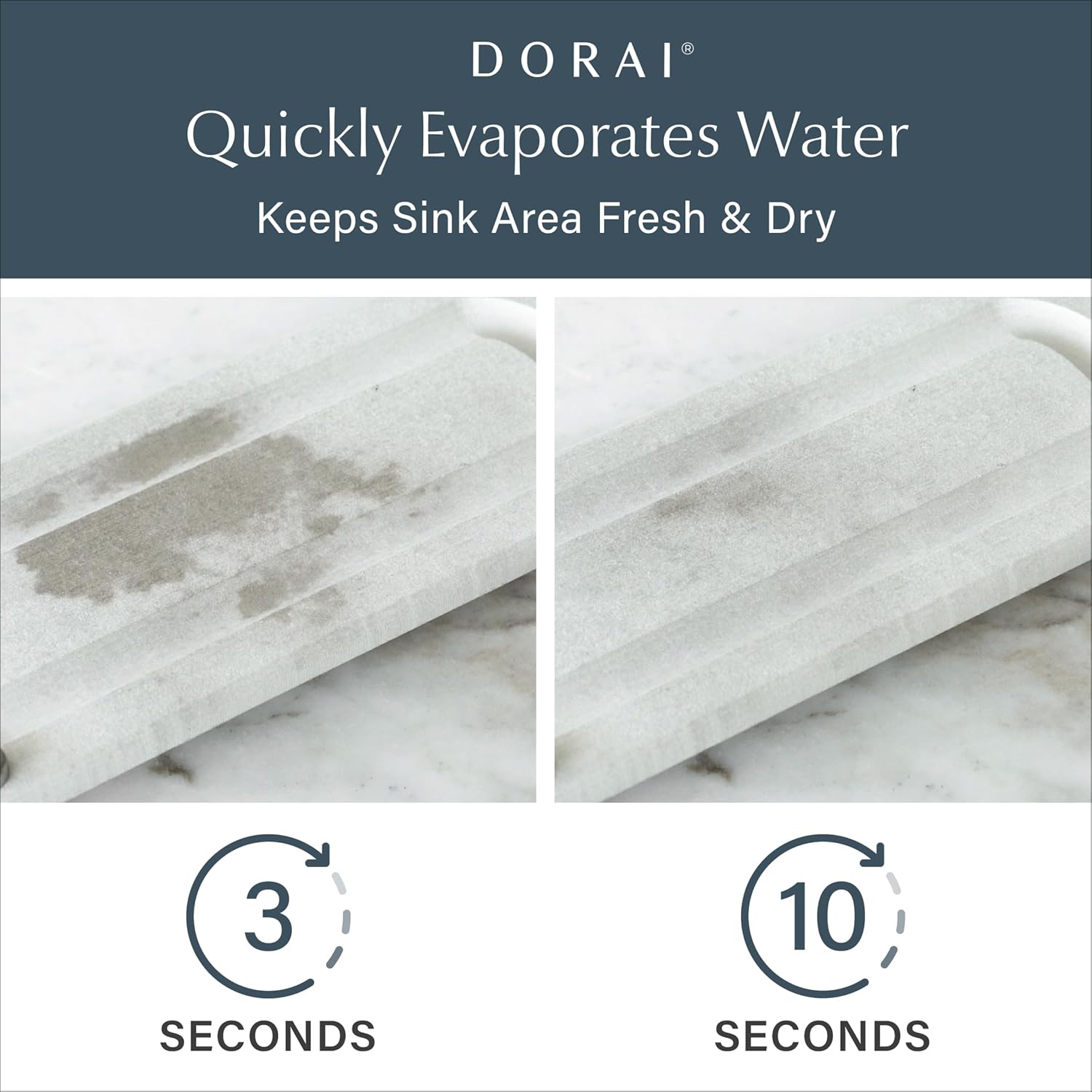 - SLEEK STONE SINK CADDY - Introducing the Dorai Home quick-drying stone tray, your perfect sink-side companion for hand soaps, dish brushes, and lotions. Crafted from Diatomaceous Earth, its raised base promotes rapid drying while preventing gunk buildup. With dimensions of 10" L x 4" W x 1.25" H, it's the ideal addition to any kitchen or bathroom.