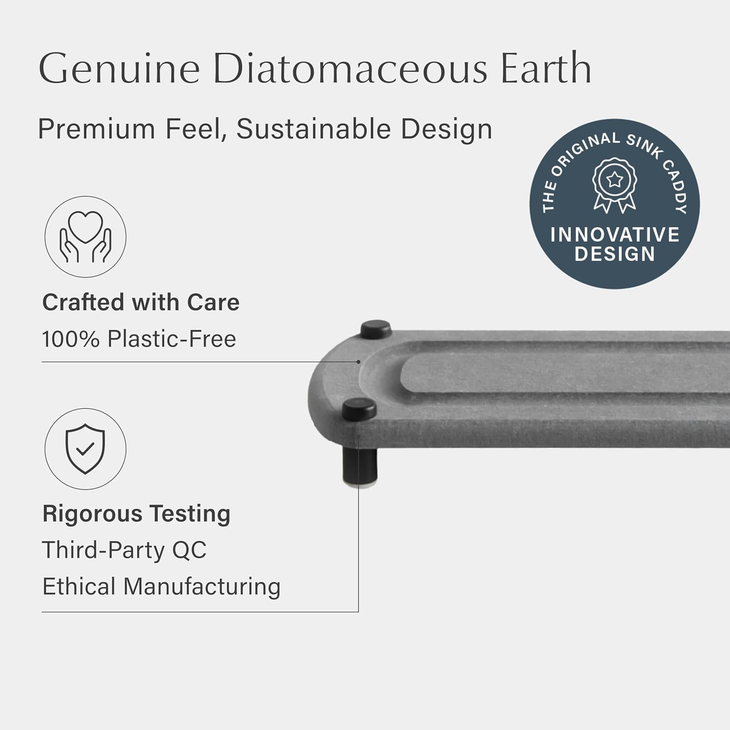 Dorai Home Sink Caddy – Water-Absorbing Stone Tray for Sink, Stainless Steel Feet, Fast-Drying, Slate