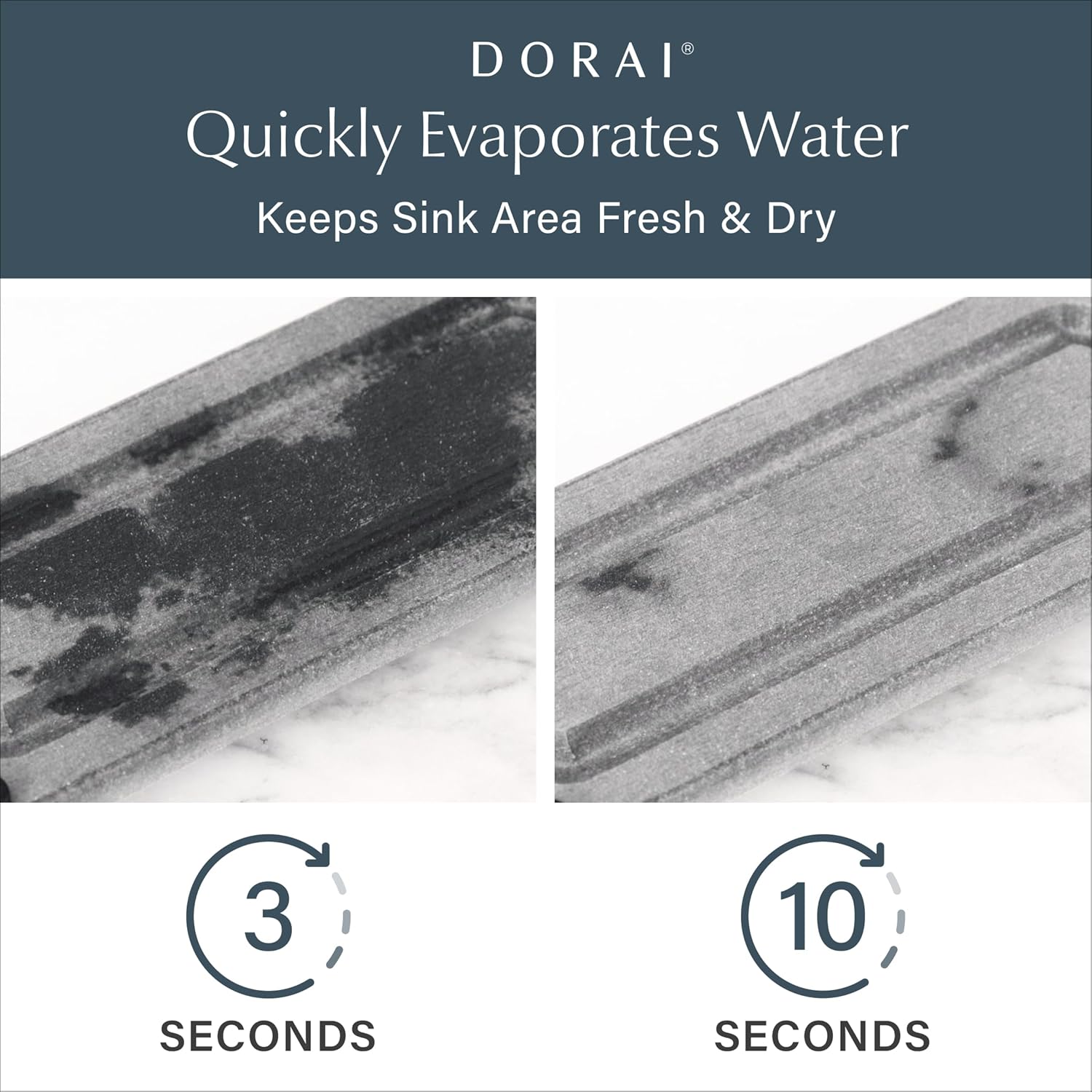 - SLEEK STONE SINK CADDY - Introducing the Dorai Home quick-drying stone tray, your perfect sink-side companion for hand soaps, dish brushes, and lotions. Crafted from Diatomaceous Earth, its raised base promotes rapid drying while preventing gunk buildup. With dimensions of 10" L x 4" W x 1.25" H, it's the ideal addition to any kitchen or bathroom.