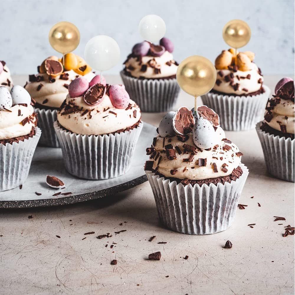 BEISHIDA-Cake Topper Gold 27 Pack Cupcake Topper with Mini Balls, Happy Birthday Acrylic Toppers Insert Pick DIY for Cake Decorations Anniversary Wedding Baby Shower Party (Gold/White)